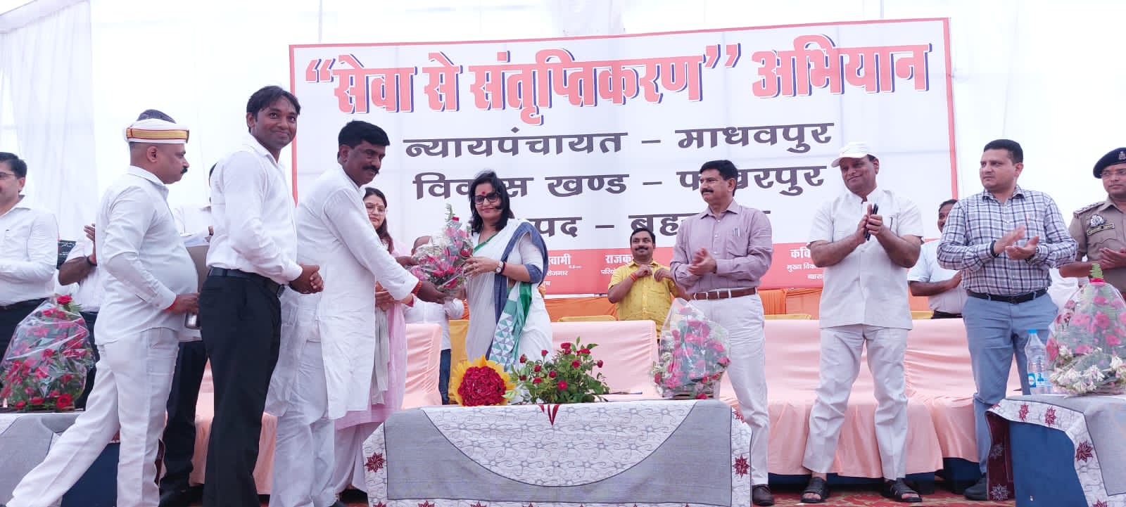 शिविर के दौरान 5935 प्रकरणों का हुआ निस्तारण बहराइच (राष्ट्र की परम्परा) । ग्रामवासियों की समस्याओं का तत्परता के साथ गुणवत्तापरक समाधान करने तथा सरकार द्वारा संचालित विभिन्न जनकल्याणकारी योजनाओं से सभी पात्र असंतऋप्त लोगों को संतृप्ति किये जाने के उद्देश्य से डीएम की अभिनव पहल पर जिले में प्रत्येक वृहस्पतिवार को संचालित किये जाने वाला ‘सेवा से संतृप्तिकरण’ अभियान अपने द्वितीय पड़ाव पर न्याय पंचायत माधवपुर वासियों के द्वार पहुंचा। विकास खण्ड फखरपुर अन्तर्गत चौधरी सिया राम इण्टर कालेज परिसर में आयोजित अभियान से न्याय पंचायत की समस्त ग्राम पंचायतों फखरपुर, परशुरामपुर, घासीपुर, मूसेपट्टी, माधवपुर, खालिदपुर, मलुकपुर, बटुरहा, बहेलिया, ततेहरा व मंझौरा को संतृप्ति किया गया।