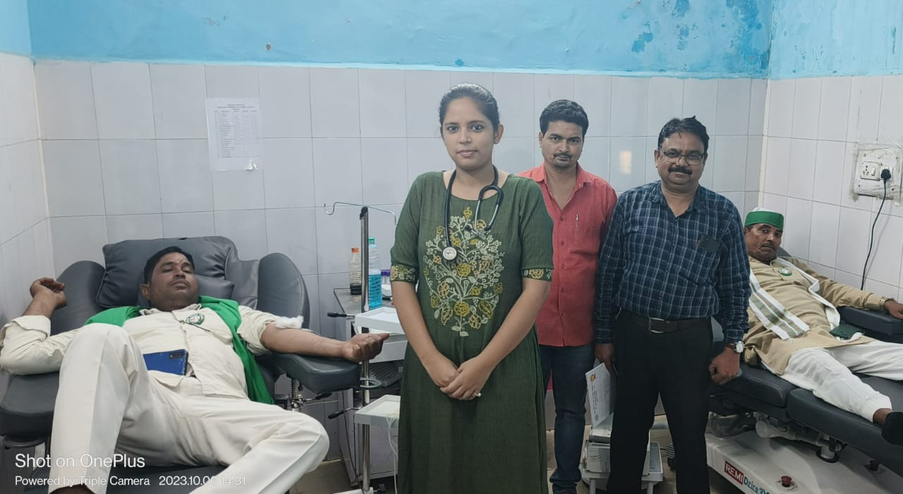 बहराइच (राष्ट्र की परम्परा) । महाराजा सुहेलदेव चिकित्सा महाविद्यालय के रक्त कोष विभाग में भारतीय किसान यूनियन के पदाधिकारी ने स्वैच्छिक रक्तदान करने का काम किया ,इस मौके पर ब्लड बैंक में जूनियर रेसिडेंट डॉ वैभवी सिंह द्वारा सबका स्वास्थ्य परीक्षण के उपरान्त मानक के अनुरूप आने वाले सभी डोनर्स का अपनी मौजूदगी में रक्तदान का कार्य संपन्न करवाया।ब्लड बैंक के विभाग अध्यक्ष डॉक्टर जयप्रकाश मौर्य ने बताया की आए दिन बहराइच जनपद के विभिन्न समाजसेवी संस्थाओं द्वारा स्वैच्छिक रक्तदान शिविर में हिस्सा लिया जाता है जो की एक अच्छी पहल है। उन्होंने समाज के लोगों से अपील की है कि रक्तदान के बारे में भ्रांतियां को मिटाने का काम करें एवं लोग इसमें बढ़-चढ़कर हिस्सा लें जिससे ज़रूरतमंदों को मदद मिल सके।