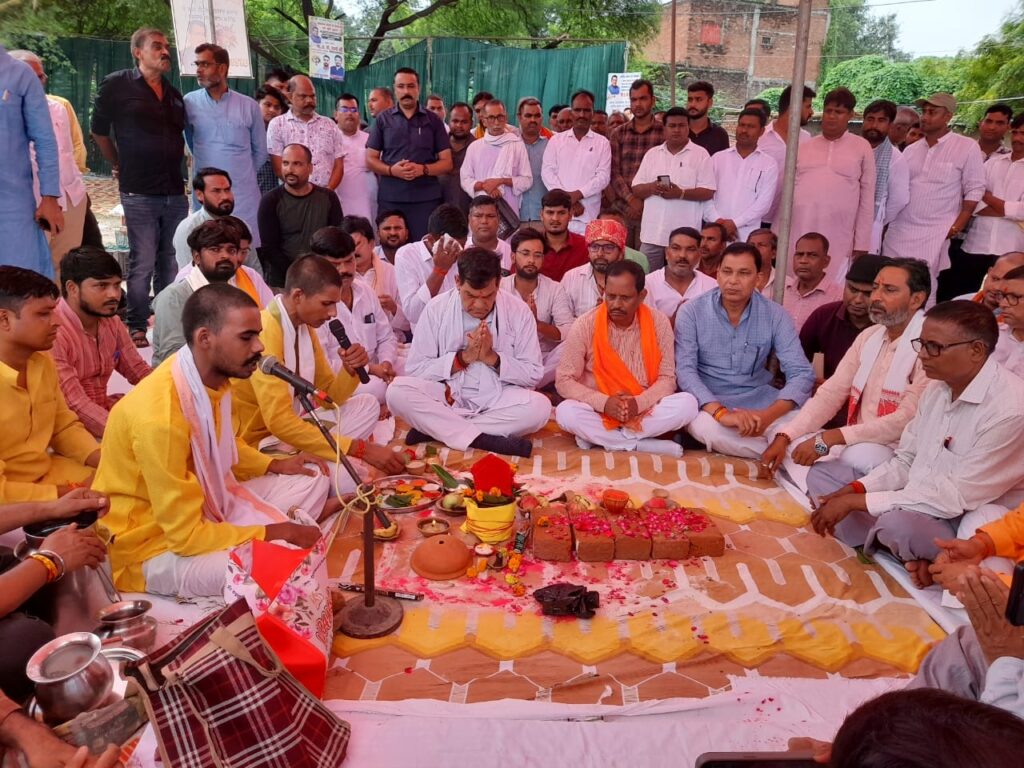 कोपागंज (राष्ट्र की परम्परा)। नगर क्षेत्र स्थित धार्मिक महत्व वाली पोखरी के 82 लाख की लागत से हो रहे सुंदरीकरण कार्य के लिए बुधवार को नगर विकास एवं ऊर्जा मंत्री ए.के. शर्मा ने भूमि पूजन कर कार्य का शुभारंभ किया। इस मौके पर हजारों की संख्या में लोग मौजूद रहे। सुंदरीकरण परियोजना के अंतर्गत पोखरी में सीढ़ियों का निर्माण, चारों तरफ इंटरलॉकिंग, प्रकाश व्यवस्था सहित अन्य सौंदर्य कार्य किए जाएंगे, जिससे यह स्थल न केवल धार्मिक आस्था का केंद्र रहेगा बल्कि पर्यटन की दृष्टि से भी आकर्षण का केंद्र बन सकेगा। कार्यक्रम में ऊर्जा मंत्री ए.के. शर्मा ने समाजवादी पार्टी पर निशाना साधते हुए कहा कि “आपने सुधाकर सिंह को विधायक तो बना दिया, लेकिन सपा कभी भी इस क्षेत्र का विकास नहीं कर सकती।” उन्होंने कहा कि भाजपा सरकार हर गांव, हर गली, हर नगर के समग्र विकास के लिए प्रतिबद्ध है। भूमि पूजन कार्यक्रम के दौरान नगर पंचायत अध्यक्ष प्रतिनिधि अरशद रियाज, भाजपा जिला रामाश्रय मौर्य अध्यक्ष सर्वेश राय, नूपुर अग्रवाल, प्रमोद राय, बुधराम राजभर, सूरज राय, श्रीराम जयसवाल, सत्यम जयसवाल सहित अन्य गणमान्य लोग मौजूद रहे।