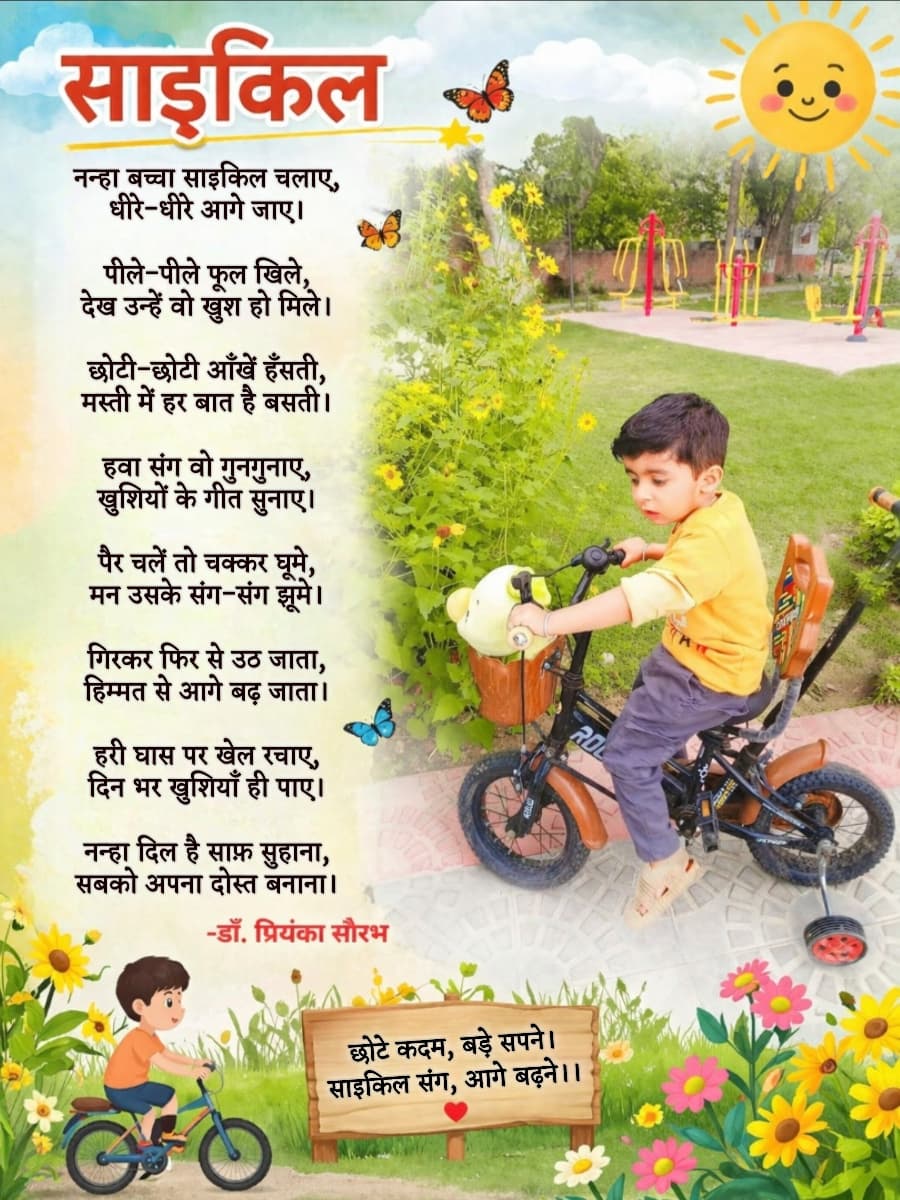 नन्हा बच्चा साइकिल चलाए,