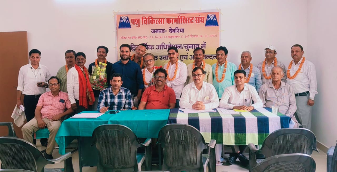 देवरिया(राष्ट्र की परम्परा)l पशु चिकित्सा फार्मासिस्ट संघ का द्विवार्षिक चुनाव पशु चिकित्सालय देवरिया सदर के प्रांगण में संपन्न हुआ। चुनाव अधिकारी डॉ सतीश कुमार के देखरेख में चुनाव में पदाधिकारियों का चयन निर्विरोध संपन्न हुआ । धनंजय सिंह को अध्यक्ष एवं राकेश कुमार भारती को महामंत्री चुना गया अन्य पदाधिकारियों में रमेशचंद्र मिश्रा संरक्षक, उपाध्यक्ष देवेश मालवीय, संयुक्त मंत्री दूधनाथ, संगठन मंत्री दिनेश कुमार कुशवाहा, कोषाध्यक्ष विनोद कुमार शर्मा, आडिटर ऋषिमुनि गुप्ता एवं प्रवक्ता पंकज कुमार को चुना गया। मुख्य पशु चिकित्साधिकारी डा अरविंद कुमार वैश्य,उप मुख्य पशु चिकित्साधिकारी डा ओमप्रकाश प्रजापति व डॉ यू.के.सिंह तथा पशुधन प्रसार अधिकारी निशाकान्त तिवारी व कृष्णकान्त तिवारी ने सभी चुनें गये पदाधिकारियों को बधाई दिया।