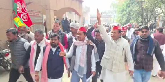 संत कबीर नगर (राष्ट्र की परम्परा)। मतदाता सूची से मुस्लिम मतदाताओं के नाम काटे जाने के आरोप को लेकर समाजवादी पार्टी ने मेंहदावल तहसील में जोरदार प्रदर्शन किया। सपा नेताओं और कार्यकर्ताओं ने उप जिलाधिकारी कार्यालय का घेराव करते हुए फॉर्म-7 के दुरुपयोग का आरोप लगाया और प्रशासन के खिलाफ नारेबाजी की। इस दौरान तहसील परिसर में अफरा-तफरी का माहौल बन गया।