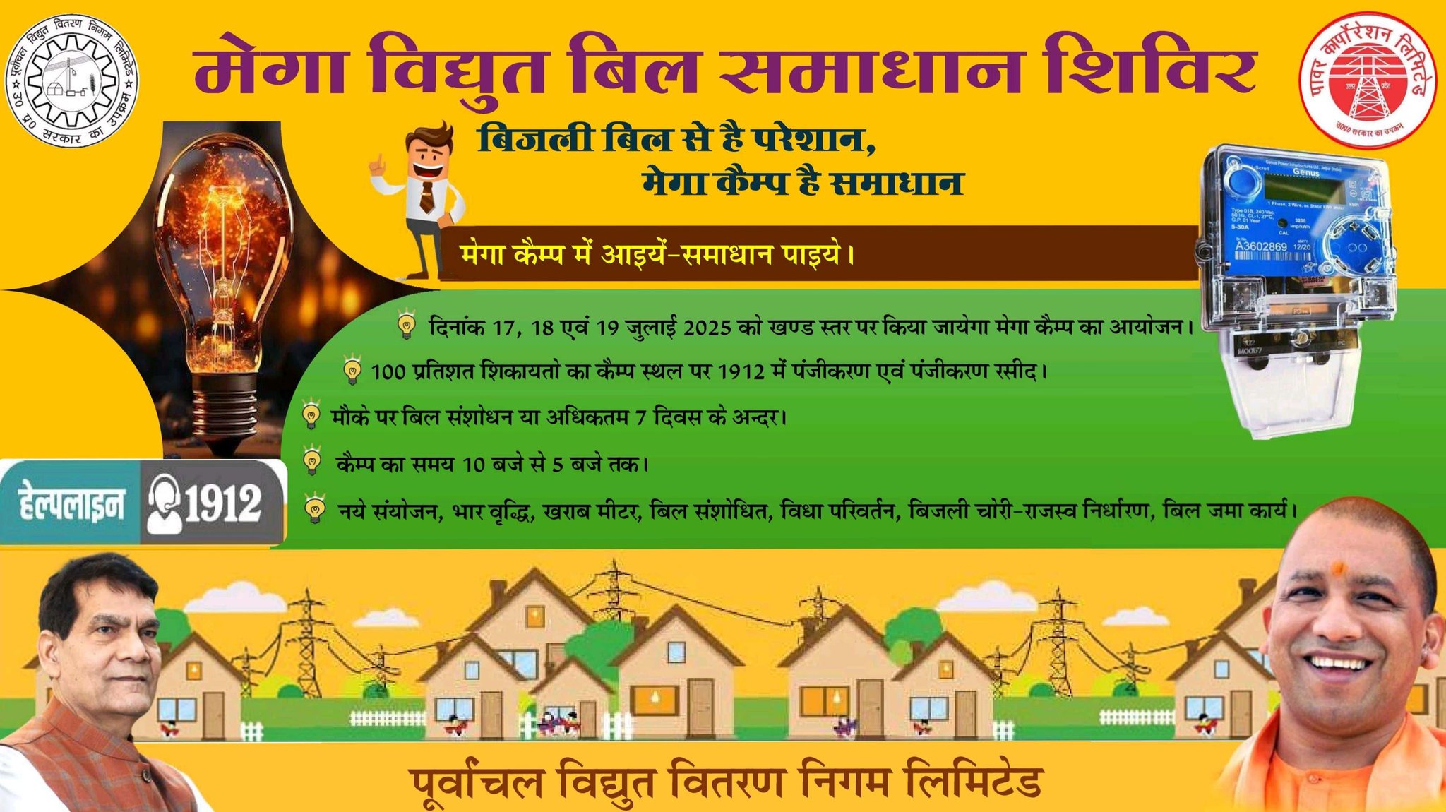 संत कबीर नगर (राष्ट्र की परम्परा)। प्रदेश सरकार की मंशा के अनुरूप बिजली उपभोक्ताओं को बेहतर सुविधाएं उपलब्ध कराने एवं विद्युत बिल संबंधी समस्याओं के समाधान हेतु उत्तर प्रदेश पावर कॉरपोरेशन लिमिटेड द्वारा जनपद के सभी विद्युत वितरण खंडों में 17, 18 एवं 19 जुलाई 2025 को विशेष मेगा कैंपों का आयोजन किया जाएगा।