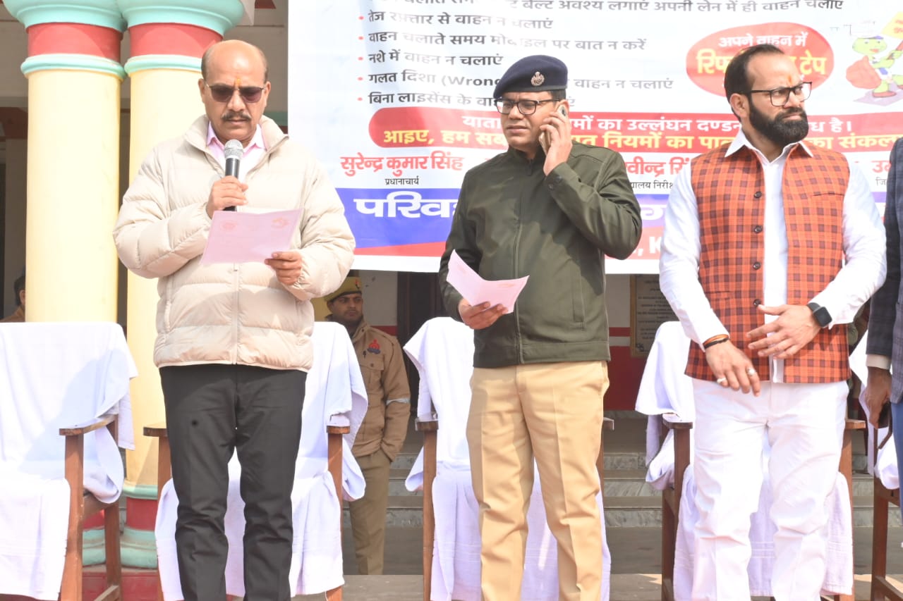 भारत रत्न सुभाष चंद्र बोस की जयंती के अवसर पर मंगलवार को उदित नारायण इंटर कॉलेज पडरौना में जिलाधिकारी उमेश मिश्रा एवं पुलिस अधीक्षक धवल जायसवाल द्वारा सुभाष चंद्र बोस के छायाचित्र पर माल्यार्पण कर पुष्पांजलि अर्पित की गई। उत्तर प्रदेश शासन द्वारा दिये गये निर्देश के कम हर वर्ष की भांति इस वर्ष भी नेता जी सुभाष चन्द्र बोस की जयंती 23.01.2024 को कक्षा 08 से 12 तक के समस्त विद्यालयो एवं जनपद स्तर पर उदित नारायण इण्टर पड़रौना मे विद्यालयों के छात्रों के साथ-साथ गोस्वामी तुलसी दास इण्टर कालेज, सियोबाई इण्टर कालेज, हनुमान इण्टर कालेज एवं अन्य विद्यालयों के छात्र-छात्राओं ने सड़क सुरक्षा मानव श्रृंखला बनायी गयी। जिलाधिकारी द्वारा सड़क सुरक्षा की शपथ दिलायी गयी। जिलाधिकारी ने सड़क सुरक्षा के संबंध में अपने विचार व्यक्त किए। उन्होंने कहा कि सभी को यातायात नियमों के पालन हमेशा पूरी तत्परता के साथ करना चाहिए,कहा कि बच्चे व युवा देश के भविष्य हैं। हम सभी यातायात के नियमों का पालन कर दुर्घटना से बच सकते है। दो पहिया वाहन चलाते समय स्वयं तथा पीछे बैठे हुए व्यक्ति को हेलमेट अवश्य पहनाए, चार पहिया वाहन चलाते समय सीट बेल्ट का प्रयोग अवश्य करें। वाहन ड्राइविंग के समस्त नियमों का अनुपालन अवश्य करें, तेज रफ्तार में वाहन कदापि न चलाएं। पुलिस अधीक्षक द्वारा समस्त छात्र-छात्राओं को सडक सुरक्षा नियमों के पालन किये जाने की जानकारी दी गयी।