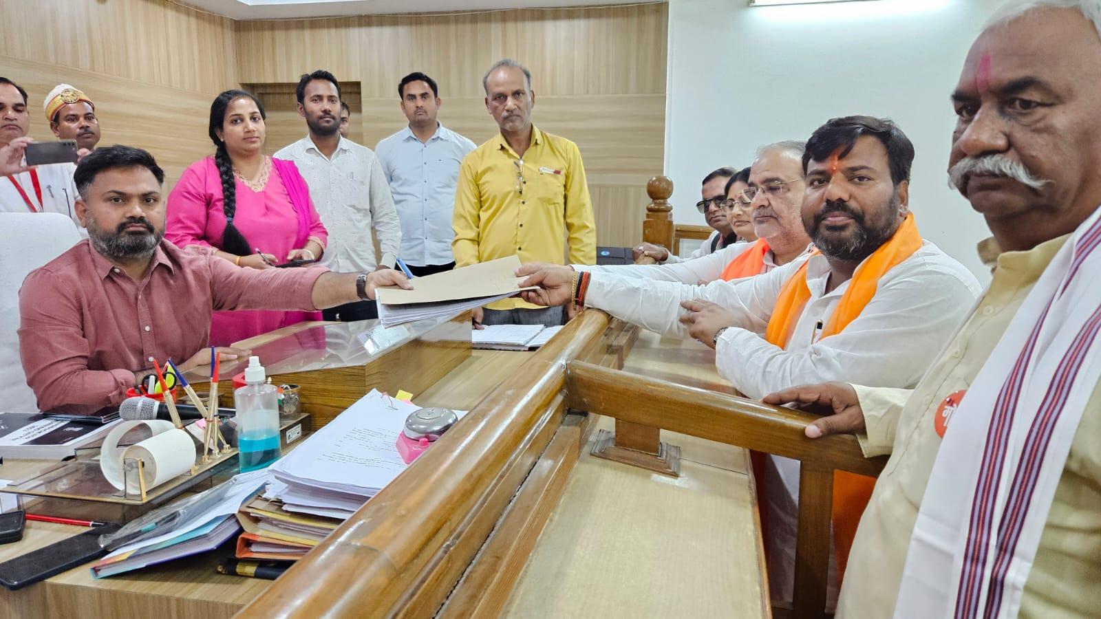 संत कबीर नगर (राष्ट्र की परम्परा)। संसदीय क्षेत्र संत कबीर नगर के निवर्तमान सांसद ई. प्रवीण निषाद ने देवाधिदेव महादेव के ऐतिहासिक शिव मंदिर तामेश्वरनाथ धाम में दर्शन पूजन के पश्चात एक लम्बे जुलूस के साथ जनपद मुख्यालय पहुंच कर कलेक्ट्रेट में बने नामंकन कक्ष में जिला निर्वाचन अधिकारी डीएम महेंद्र सिंह तंवर को अपने नामंकन पत्र सौंपे।