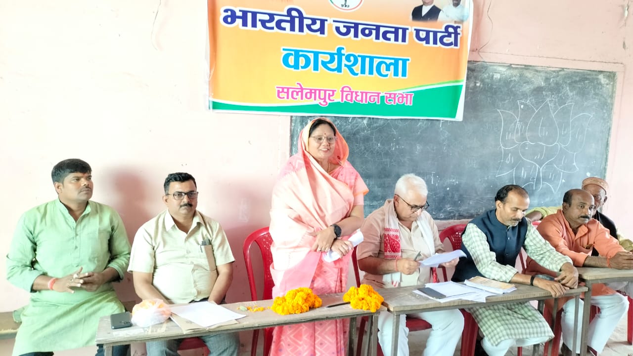 सलेमपुर/देवरिया(राष्ट्र की परम्परा)l भारतीय जनता पार्टी विधानसभा सलेमपुर द्वारा रविवार को संस्कृत पाठशाला में विधानसभा स्तरीय बूथ सशक्तिकरण कार्यशाला आयोजित की गई।जिसे संबोधित करते हुए राज्यमंत्री विजयलक्ष्मी गौतम ने कहा कि पार्टी की रीढ़ भाजपा के कार्यकर्ता है। इस बार भी कार्यकर्ताओ के दम से 2024 में भाजपा की सरकार बनेगी। बूथ सशक्तिकरण अभियान काफी महत्वपूर्ण है और इसकी सफलता आगामी चुनावों में पार्टी की जीत को सुनिश्चित करेगी।
