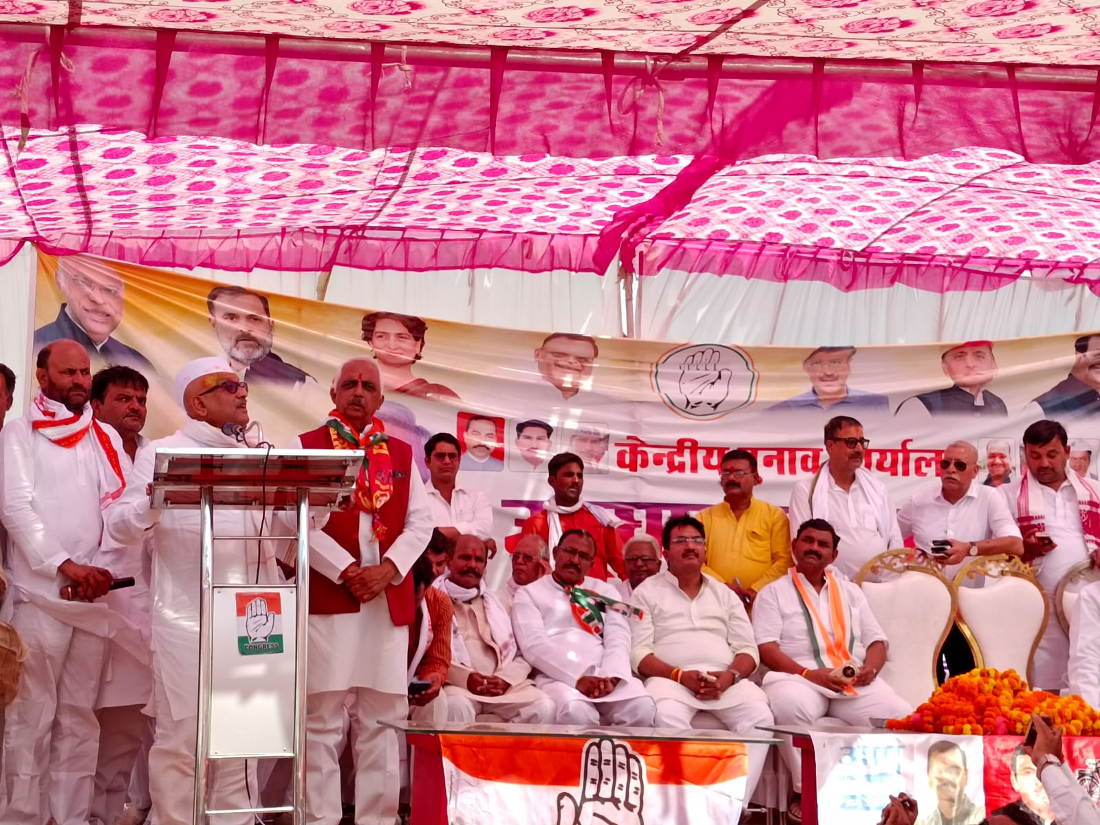 देवरिया(राष्ट्र की परम्परा)। आज भाजपा पूरे देश व प्रदेश में झूठ का बाजार लगा रही है। देश की जनता को झूठे वादे व लोक लुभावन नारों से फिर गुमराह करने की तैयारी में है, लेकिन जनता इस भाजपा सरकार की विकास व जन विरोधी खोखले वादे में नही विश्वास करने जा रही है। उक्त बातें नगर के कसया रोड स्थित कृष्णा मैरेज हाल में देवरिया संसदीय क्षेत्र के कांग्रेस प्रत्याशी राष्ट्रीय प्रवक्ता अखिलेश प्रताप सिंह के केंद्रीय चुनाव कार्यालय के शुभारंभ के अवसर पर आयोजित सभा को सम्बोधित करते हुए कांग्रेस के प्रदेश अध्यक्ष पूर्व मंत्री अजय राय ने कहा।उन्होंने कहा कि आज हर जगह सभी महत्वपूर्ण काम गुजरात के ठेकेदारों के जिम्मे देकर देश को चला रहे दो गुजराती प्रदेश की जनता से कह रहे हैं कि पूरे अस्सी सीट चाहिए।जनता अब उत्तर प्रदेश से इनका सफाया कर रही हैं। पूरे देश की जनता को कोविशिल्ड का टीका लगवाकर मोदी ने सबको खतरे में डाल दिया है।टीका पर अगर फोटो आपका था तो इसकी जिम्मेदारी भी आपको लेनी चाहिए। जो बुलडोजर चलवा रहे हैं उनको भी उनका जबाब समय से दिया जाएगा। क्षेत्र में विकास के लिए आप अखिलेश प्रताप सिंह को जिताइये यह आपकी आवाज हमेशा मजबूती से उठाएंगे। पूर्व मंत्री सपा नेता अम्बिका चौधरी ने कहा कि यह क्षेत्र समाजवादी विचारधारा का क्षेत्र है, आप को मजबूत प्रत्याशी मिला है, इनको जिताकर संसद में भेजें यह विकास के मामले में पिछड़े क्षेत्र को आगे बढ़ाने का काम करेंगे। राष्ट्रीय प्रवक्ता प्रत्याशी अखिलेश प्रताप सिंह ने कहा कि किसान का कर्जा इस सरकार ने माफ नहीं किया, आज वह आत्महत्या करने को मजबूर हैं ।किसानों का कर्जा सिर्फ कांग्रेस ने माफ किया था।नौजवान, किसान, देश के जवान व बेरोजगार युवाओं की चिंता सिर्फ कांग्रेस को हैं।अब समय आ गया है इस निकम्मी सरकार को उखाड़ फेंकने का। अब भाजपा आपको धोखा नहीं दे पाएगी। आप सभी के मदद से इंडिया गठबंधन की सरकार बनेगी । कार्यक्रम को पूर्व राज्यसभा सदस्य कनकलता सिंह,प्रदेश उपाध्यक्ष आलोक प्रसाद,प्रदेश महासचिव अवधेश सिंह,पूर्व विधायक दीनानाथ कुशवाहा, पूर्व विधान परिषद सदस्य जेपी जायसवाल, कांग्रेस जिलाध्यक्ष रामजी गिरि, सपा जिलाध्यक्ष व्यास यादव,प्रदेश सचिव जैनेन्द्र पाण्डेय मिंटू,आप के जिलाध्यक्ष हरिनारायण चौहान, सुयश मणि त्रिपाठी, शहला अहरारी,विस्मिल्लाह लारी, राघवेंद्र सिंह राकेश , धर्मेन्द्र सिंह,पुरुषोत्तम नारायण सिंह,आनंद श्रीवास्तव सोनू,,डॉ धर्मेन्द्र पाण्डेय,मुकुन्द भाष्कर मणि त्रिपाठी,मनीष सिंह, बेचू चौधरी