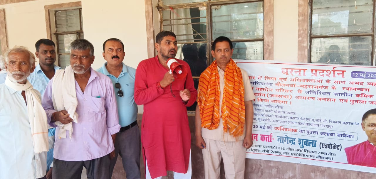 महराजगंज(राष्ट्र की परम्परा)। नौतनवां तहसील परिसर में बीते एक सप्ताह से अधिक 14 वें दिन उपनिबंधक के खिलाफ चल रहे क्रमिक अनशन ,धरना प्रदर्शन सद्बुद्धि यज्ञ पदयात्रा करने वाले आंदोलनकारी नागेंद्र शुक्ला एडवोकेट ने भ्रष्टाचार के विरोध में चल रहे आंदोलन में जहां कई अधिवक्ता संघ और राजनैतिक लोगों ने समर्थन दिया है, वहीं भाजपा नेता जितेंद्र जायसवाल ने अनशन स्थल पर पहुंचकर समर्थन दिया। अपने उद्बोधन में उन्होंने कहा कि भाजपा की सरकार को बदनाम करने वाले लोग चाहे कोई भी कर्मचारी अधिकारी होगा उसके खिलाफ कार्यवाही होगी। यह भाजपा की प्राथमिकता है।बताया जाता है कि नागेंद्र प्रसाद शुक्ला एडवोकेट बीते दिनों से तरह-तरह के आंदोलन अपना कर अपना विरोध जाता रहे हैं।उनका कहना है कि उपनिबंधक के खिलाफ चल रहे चौदहवें दिन के आंदोलन मे अब तक कोई कार्यवाही न होना अधिकारियों की