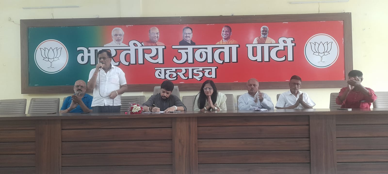 बहराइच (राष्ट्र की परम्परा)lजिला कार्यालय पर जिलाध्यक्ष श्यामकरन टेकड़ीवाल की अध्यक्षता में मन की बात को लेकर एक बैठक की गई। मुख्य अतिथि क्षेत्रीय उपाध्यक्ष राहुल राज रस्तोगी उपस्थित रहे। उन्होंने सभी मंडल अध्यक्ष एवं जिला पदाधिकारियों को संबोधित किया l उन्होंने व्यवस्था में लगे सभी पदाधिकारियों से कहा कि यह कार्यक्रम की प्रासिंगिगता तभी सफल होगी जब इसे आप सरल ऐप अपलोड करा दें। कार्यक्रम के निमित्त मंडल एवं जिला स्तर पर मानिटरिंग टीम का गठन किया गया इस कार्य को प्रेरित करते रहेगी l कार्यक्रम का संचालन जिला महामंत्री राघवेंद्र प्रताप सिंह ने किया l इस अवसर पर जिला उपाध्यक्ष राहुल राय,रणविजय सिंह,उमाशंकर तिवारी, सुरेश गुप्ता,जिला महामंत्री नंन्हेलाल लोधी,धीरेंद्र मोहन आर्य, डॉक्टर जितेंद्र त्रिपाठी,सुवेद वर्मा जिला मंत्री हेमा निगम,डिंपल जैन, संजय राव,सुनील श्रीवास्तव,हरेंद्र विक्रम सिंह ,कोषाध्यक्ष राजन सिंह, मीडिया प्रभारी देवेंन्द्र कुमार मिश्र, आई टी प्रमुख प्रमोद पांडे,सह संयोजक रामबचन सोनी,संतोष बाबा जिला सोशल मीडिया अभिषेक गुप्ता,किसान मोर्चा जिला अध्यक्ष जितेंद्र प्रताप सिंह,रामकृपाल मिश्रा कुंदन लोधी,सौरभ मिश्र,रमेश जायसवाल,मंडल अध्यक्ष शिवेंद्र प्रताप सिंह ,वीरचन्द्र वर्मा,मनीष देव त्रिपाठी,रामनिवास जायसवाल,सहित तमाम कार्यकर्ता उपस्थित रहे।