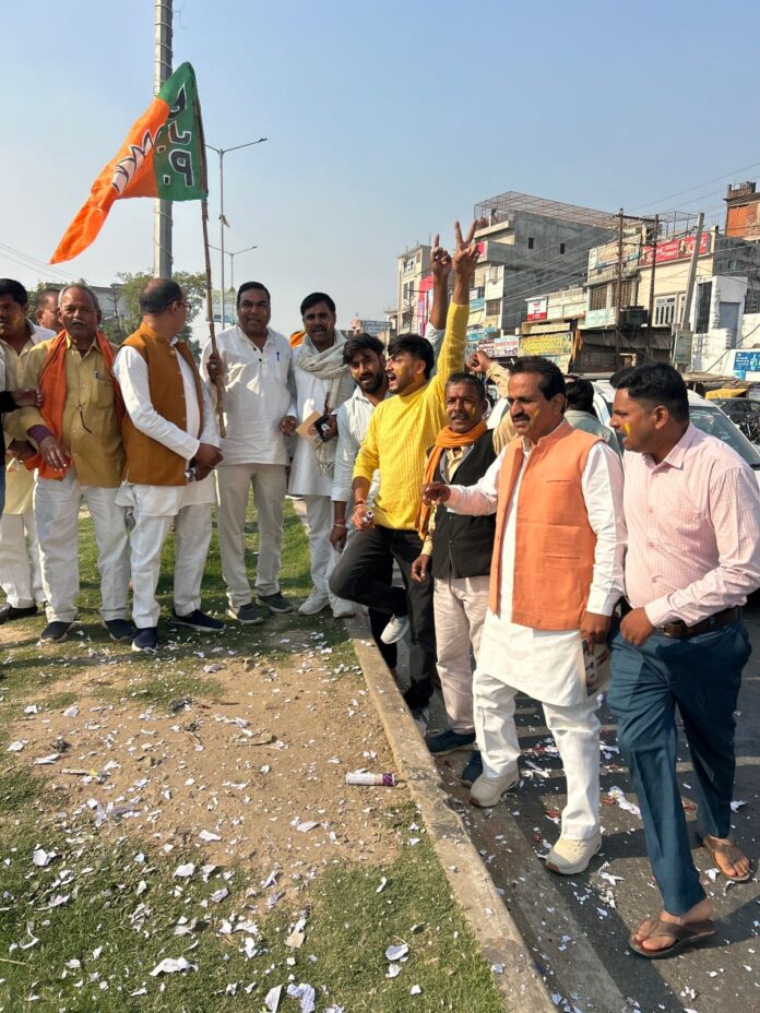 भाजपा कार्यकर्ता एनडीए की इस जीत को विकास और सुशासन की जीत बता रहे थे। जश्न के दौरान कार्यकर्ताओं ने ढोल-नगाड़ों की थाप पर नाचते हुए खुशी का इजहार किया।