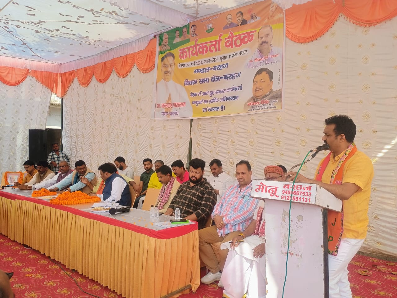 नगरपालिका नंदना वार्ड स्थित केंद्रीय चुनाव कार्यालय पर शुक्रवार को भारतीय जनता पार्टी के कार्यकर्ताओं की बैठक संपन्न हुई।इस कार्यक्रम के मुख्य अतिथि सांसद कमलेश पासवान ने अपने सम्बोधन में कहा कि पार्टी ने मेरे कार्यशैली को देखते हुए मुझे बांसगांव लोकसभा के पुनः प्रत्याशी बनाकर भेजा है कि, फिर मोदी सरकार लाये और देश की तरक्की और विकास की गंगा बहाया जाय । वहीं आगे कहा कि भाजपा के कार्यकर्ता बंधु चेहरे देख कर न मोदी को देखकर वोट करें,आगे आदेशित किया कि कार्यकर्ता बंधु मंडल व देहात मंडल अध्यक्ष व सेक्टर प्रमुख और बूथ अध्यक्ष भागीदारी सुनिश्चित करें और पार्टी को मजबूती प्रदान करें।