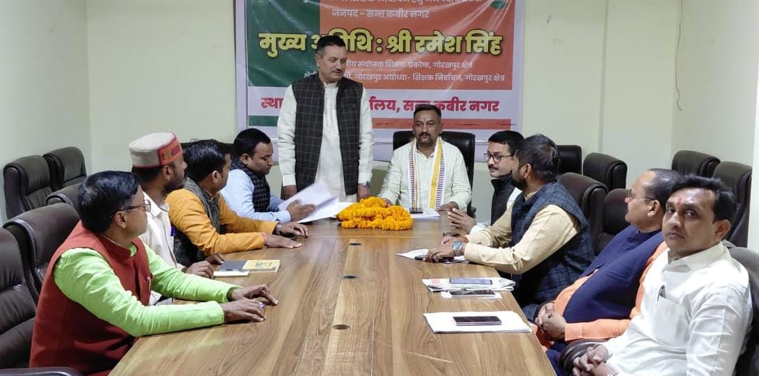संत कबीर नगर (राष्ट्र की परम्परा)। गोरखपुर–अयोध्या शिक्षक निर्वाचन की तैयारी के लिए भाजपा की जनपद स्तरीय बैठक संत कबीर नगर में आयोजित की गई। बैठक में जिले के विभिन्न शिक्षण संस्थानों से जुड़े शिक्षक प्रतिनिधियों, पदाधिकारियों और कार्यकर्ताओं ने व्यापक रूप से भाग लिया।