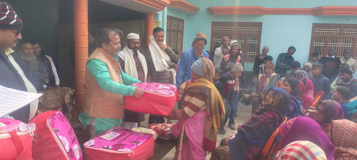 चितबड़ागांव नगर पंचायत के चैयरमैन अमरजीत सिंह ने सोमवार को वार्ड नंबर 12 आजाद नगर में कैम्प लगाकर कंबल वितरण किया। जिसमें नगर पंचायत के सभी सभासदों और सभासद प्रतिनिधि की मौजूदगी में वार्ड नंबर 12 आजाद नगर के सैकड़ों पात्रों को कंबल वितरित कर सर्दी से राहत देने का प्रयास किया।कम्बल पाकर लोगों के चेहरे खिल उठे। सर्दी से गरीब असहाय लोगों को राहत देने के लिए नगर पंचायत अध्यक्ष अमरजीत सिंह हर वर्ष कंबल वितरित करते हैं। इस वर्ष भी सोमवार को कंबल वितरण कार्यक्रम आयोजित किया गया। चेयरमैन अमरजीत सिंह ने कहा की इस कड़ाके की ठंड से बचाव के लिए शासन के मंशा अनुसार नगरपंचायत के द्वारा जगह जगह पर अलाव की व्यवस्था किया गया है साथ ही रैन बसेरे को संचालित किया जा रहा है।साथ कहा कि आने वाले दिनों में नगरपंचायत के सभी वार्डों में कैम्प लगाकर जरूरतमंदों लोगों को कंबल वितरण किया जायेगा इस अवसर पर सभासद अखिलेश सिंह, शिव मंगल सिंह, विनय तिवारी, राजेंद्र मिश्रा, सुर्य प्रताप सिंह,शौकत शोहराब, ज्ञानप्रकाश सिंह, सभासद प्रतिनिधि मनु राईन,अवधेश गुप्ता, मनोज कन्नौजिया, सतेन्द्र चौरसिया, आदि सम्मानित लोग उपस्थित रहे।।
