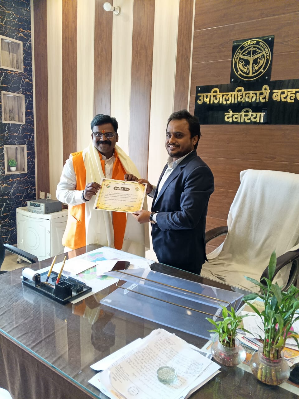 बरहज/देवरिया (राष्ट्र की परम्परा)। नगर क्षेत्र में एसआईआर (SIR) प्रक्रिया को 100 प्रतिशत पूरा करने के लिए नंदना वार्ड के बीएलओ प्रिंस तिवारी (जय नारायण त्रिपाठी) को प्रथम स्थान प्राप्त हुआ है। उनकी उत्कृष्ट कार्यशैली, समर्पण और समयबद्धता को देखते हुए एसडीएम बरहज ने उन्हें साल एवं प्रशस्ति पत्र देकर सम्मानित किया।