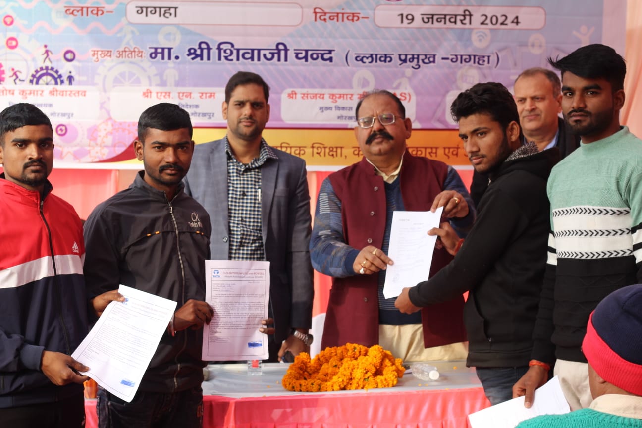 शुक्रवार को उ प्र सरकार की महत्वकांक्षी योजना दीन दयाल उपाध्याय-ग्रामीण कौशल्य योजना अन्तर्गत कौशल विकास मिशन राजकीय औद्योगिक प्रशिक्षण संस्थान एवं सेवायोजन के संयुक्त तत्वाधान में, जनपद गोरखपुर के विकास खण्ड-गगहा स्थान रघुराज सिंह किसान इण्टर कालेज गगहा में सम्पन्न कराया गया। जिसमें मुख्य अतिथि के रूप में उपस्थित शिवाजी चन्द ब्लाक प्रमुख गगहा द्वारा रोजगार मेले का शुभारम्भ द्वीप प्रज्वलन कर किया गया। मेले में जिला समन्वयक संतोष कुमार श्रीवास्तव, प्रधानाचार्य भानु प्रताप चन्द, जिला कौशल प्रबन्धक विकास त्रिपाठी, शशिकान्त मौर्य, जिला कार्यक्रम प्रबन्धक आलोक शर्मा, प्रान्जल शाही तथा समस्त कर्मचारियों के सहयोग से सफल रोजगार मेले का आयोजन किया गया। जिसमें 06 कंपनियों ने प्रतिभाग किया साथ ही 332 अभ्यर्थियों साक्षात्कार में उपस्थित हुए, जिसमे से 119 अभ्यर्थियों को चयनित कर 08 अभ्यर्थियों को तत्काल नियुक्ति पत्र प्रदान किया गया।