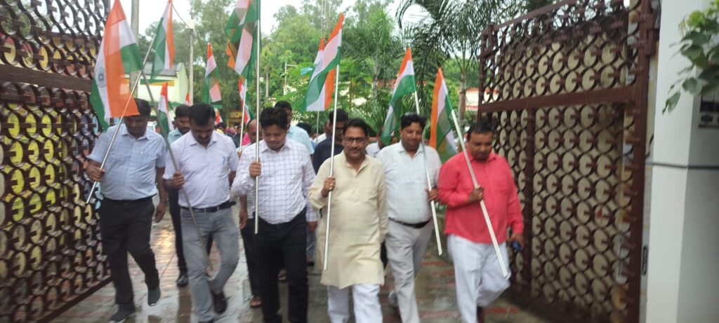 महराजगंज (राष्ट्र की परम्परा)। घुघली विकास खंड परिसर से ब्लॉक प्रमुख संघ के जिला कोषाध्यक्ष ओमप्रकाश जायसवाल के नेतृत्व में ब्लाक कर्मियों एवं अधिकारियों द्वारा तिरंगा रैली निकल गई। क्षेत्र के सैकड़ो लोगों ने भी उत्साहपूर्वक भाग लिया। हाथों में लहराते तिरंगे और भारत माता की जय, वंदे मातरम के नारों से पूरा माहौल देशभक्ति के रंग में रंग गया। रैली घुघली नगर का भ्रमण करते हुए सुभाष चौक घुघली पहुंची, जहां रैली में शामिल लोगों द्वारा उन्हें नमन किया गया। अमर शहीदों, स्वतंत्रता सेनानियों एवं बलिदानियों के समर्थन में नारे लगाए। इस अवसर पर ब्लॉक प्रमुख प्रतिनिधि ने अपने उद्बोधन में कहा कि आज की यह तिरंगा रैली हमें याद दिलाता है कि स्वतंत्रता सेनानियों ने अपने प्राणों की आहुति देकर हमें आजाद हवा में सांस लेने का अवसर दिया। हमारा कर्तव्य कि हम इस स्वतंत्रता की रक्षा पूरे समर्पण और निष्ठा के साथ करें। उन्होंने यह भी कहा कि भारत की एकता और अखंडता बनाए रखने में हम सभी को अपने नैतिक जिम्मेदारी निभाने में अपनी महत्वपूर्ण भूमिका का निर्वहन करना चाहिए। खण्ड विकास अधिकारी राजकुमार ने अपने उद्बोधन में कहा कि भारत का तिरंगा केवल कपड़े का टुकड़ा नहीं यह हर भारतीय के दिल की धड़कन है। यह हमें सिखाता है कि साहस, शांति और समृद्धि ये तीनों मिलकर ही भारत माता की आत्मा बनाते हैं।