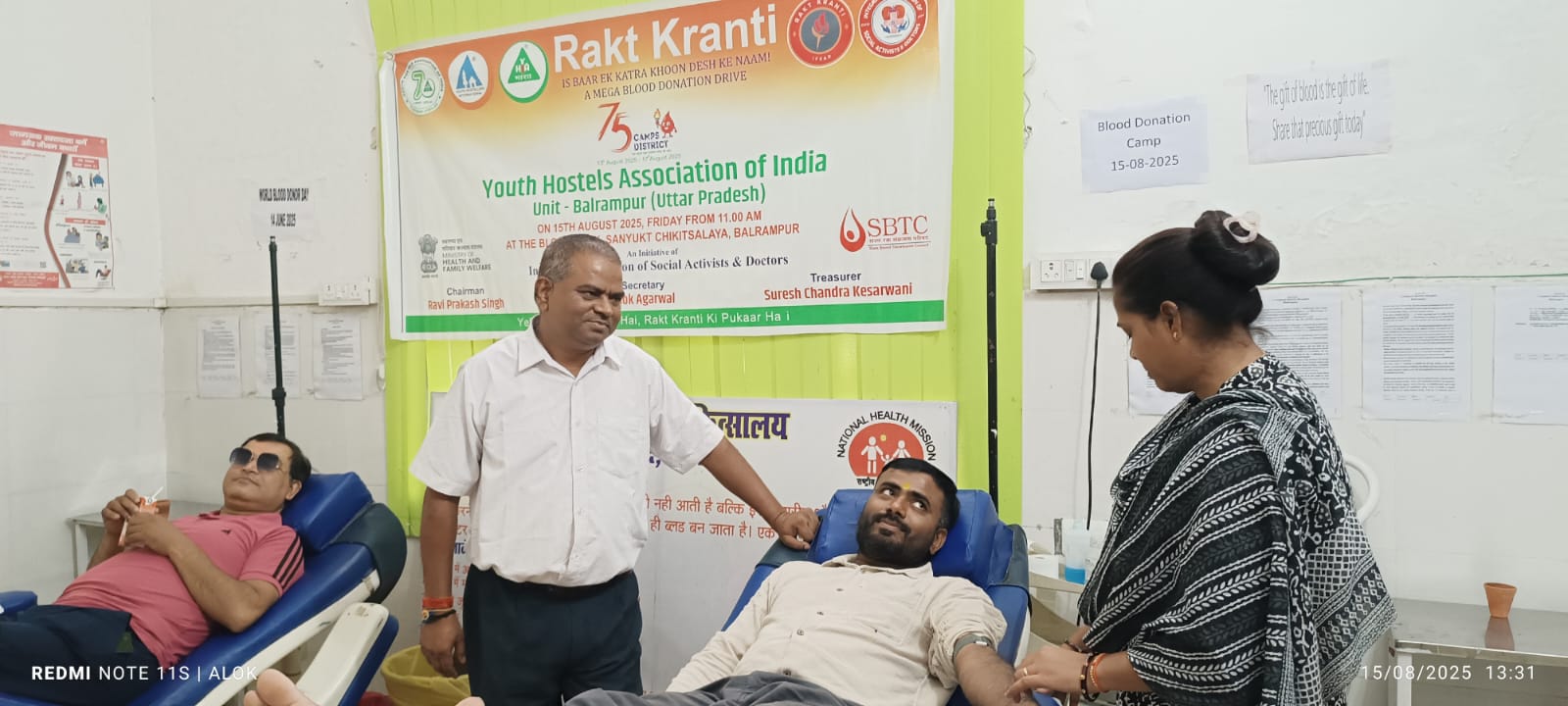 बलरामपुर (राष्ट्र की परम्परा)। यूथ हॉस्टल्स एसोसिएशन ऑफ़ इंडिया की जनपद बलरामपुर इकाई द्वारा आज एक वृहद रक्तदान शिविर का आयोजन जनपद मुख्यालय स्थित सँयुक्त चिकित्सालय के ब्लड बैंक में किया गया। इस शिविर का आयोजन स्वतंत्रता दिवस के अवसर पर इंटीग्रेटेड फेडरेशन ऑफ़ सोशल ऐक्टिविस्ट्स एंड डॉक्टर्स नामक संस्था की मुहिम रक्त क्रांति – हर घर रक्तदाता अभियान के अंतर्गत किया गया। एक नई पहल – रक्तदाताओं की भागीदारी न केवल जरूरतमंदों को नया जीवन देगी, बल्कि उत्तर प्रदेश को 100% स्वैच्छिक रक्तदाता राज्य बनाने की दिशा में एक ऐतिहासिक कदम भी होगी। यह न केवल सेवा है, बल्कि एक गर्व का क्षण भी है – जब समाज आपके प्रयास को सराहेगा। आप आइए, साथ चलिए और रक्तदान से बनाइए इंसानियत की मिसाल। आपका एक कदम किसी की ज़िंदगी की नई शुरुआत बन सकता है। रक्तदान को जनांदोलन बनाने के संकल्प के साथ इस रक्तदान शिविर का आयोजन किया गया। यह महाअभियान इंटीग्रेटेड फेडरेशन ऑफ सोशल एक्टिविस्ट्स एंड डॉक्टर्स के द्वारा शुरू किया गया है, जो समाजसेवियों और चिकित्सकों के बीच समन्वय स्थापित कर जमीनी स्तर पर अधिक प्रभावी कार्य करने के उद्देश्य से गठित हुआ है। रक्त क्रांति अभियान का आयोजन 13 अगस्त से 17 अगस्त तक उत्तर प्रदेश के सभी 75 ज़िलों में किया जा रहा है। इसका लक्ष्य वर्ष 2030 तक उत्तर प्रदेश को और वर्ष 2037 तक पूरे भारत को 100% स्वैच्छिक रक्तदाता राज्य व राष्ट्र बनाना है। कार्यक्रम के दौरान वक्ताओं ने कहा कि रक्तदान न केवल जीवन बचाने का सबसे सरल और मानवीय कार्य है, बल्कि यह सामाजिक एकता और जागरूकता का प्रतीक भी है। इससे आप स्वयं भी स्वस्थ रहते हैं और अनेक बीमारियों से बचते भी हैं। यूथ हॉस्टल्स की बलरामपुर इकाई द्वारा समय समय पर रक्तदान शिविरों का आयोजन होता रहा है। शिविर में इकाई के चेयरमैन रवि प्रकाश सिंह सहित अन्य सदस्य उपस्थित रहे। शिविर के मुख्य सँयोजक जनपद के ब्लडमैन आलोक अग्रवाल ने बताया कि कुल 21 लोगों ने रक्तदान करने के लिए अपना नाम लिखवाया था जिसमें 17 लोग उपस्थित हुए और 16 लोगों ने रक्तदान करने का सौभाग्य प्राप्त किया। 1 रक्तदानी का हीमोग्लोबिन कम होने के कारण वह रक्तदान नहीं कर सके। स्थानीय सँयुक्त चिकित्सालय बलरामपुर के ब्लड बैंक की टीम में डॉ आकांक्षा शुक्ला, काउंसलर हिमांशु तिवारी, लैब टेक्नीशियन अशोक पांडेय, सोनम तिवारी, अंजली सिंह एवं अजीत श्रीवास्तव का सराहनीय सहयोग रहा। रक्तदानियों में हिमांशु तिवारी, वेद मणि त्रिपाठी, श्याम सुंदर विश्वकर्मा, सुबोध कुमार मिश्र, आशुतोष मिश्र, राजेश कुमार कैराती, संध्या उपाध्याय, नेहा अग्रवाल, अनूप अग्रवाल, मोहित मिश्रा, नूतन प्रताप सिंह, रवि मोहन तिवारी, ओम प्रकाश, कन्हैया 