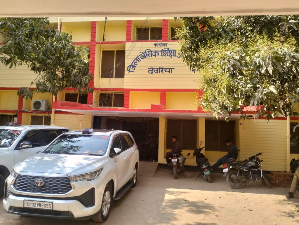 देवरिया (राष्ट्र की परम्परा)शिक्षक कृष्ण मोहन सिंह आत्महत्या कांड ने अब सीधे जिले के सर्वोच्च प्रशासनिक अधिकारियों को सड़क पर उतार दिया है। सीडीओ और एसडीएम के बाद अब जिलाधिकारी दिव्या मित्तल खुद बेसिक शिक्षा अधिकारी कार्यालय पहुंच चुकी हैं। जिस दफ्तर में बैठकर कल तक ‘रंगदारी’ और ‘वसूली’ का खेल चल रहा था, आज वहां भारी पुलिस बल और आला अधिकारियों का जमावड़ा है।