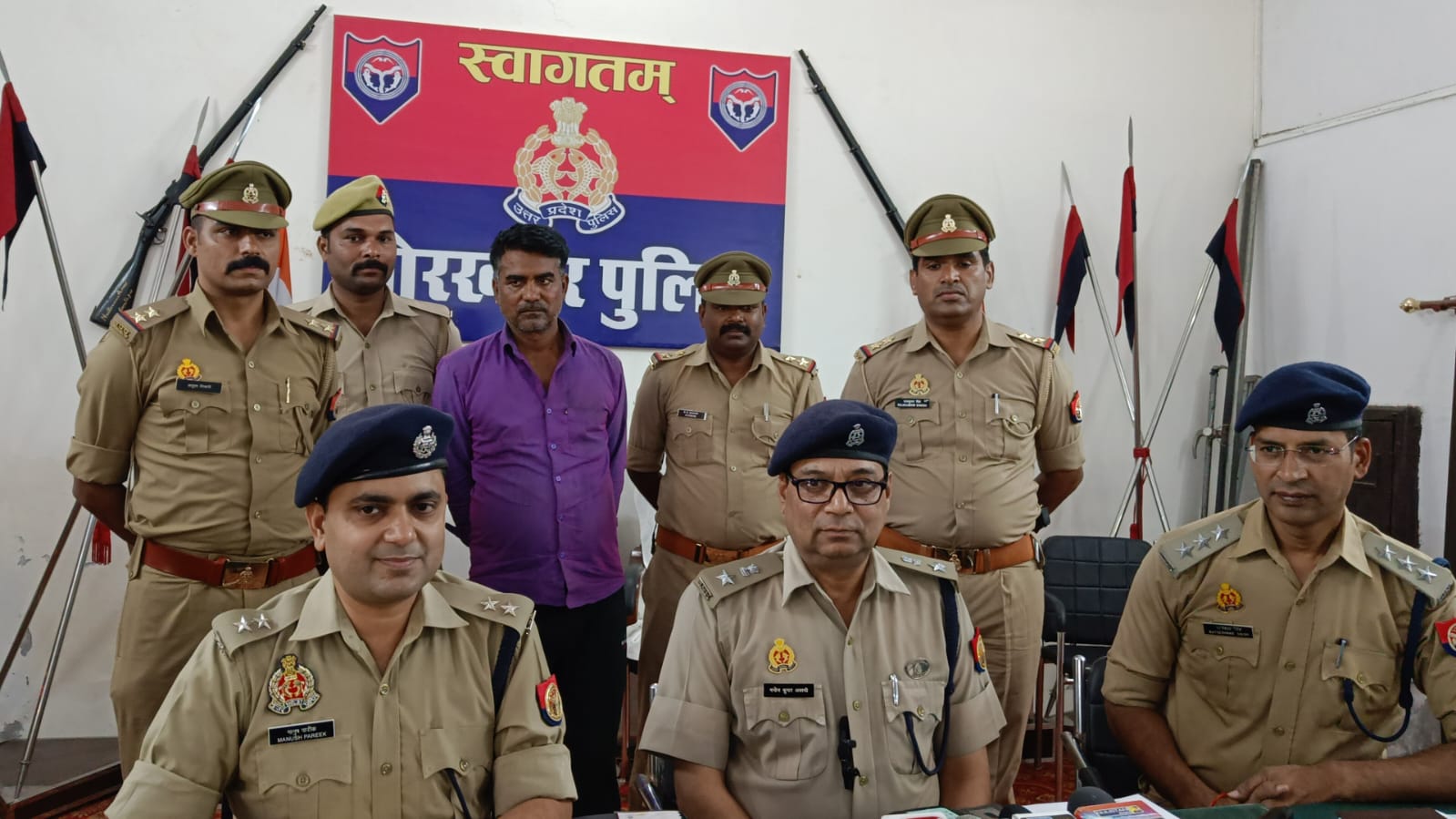 गोरखपुर। (राष्ट्र की परम्परा)प्रेम प्रसंग में हत्या कर फरार हुए अभियुक्त को कैंपियरगंज पुलिस ने 24 घंटे के अंदर गिरफ्तार करने में सफलता प्राप्त किया कैंपियरगंज थाना क्षेत्र के बान टोला जलाल निवासी पिंटू निषाद की गला दबाकर हत्या करने वाले हत्यारे चुन्नू यादव मेहदावल को कैंपियरगंज पुलिस ने 24 घंटे के अंदर गिरफ्तार करने में सफलता प्राप्त किया पुलिस लाइन वाइट हाउस सभागार में पुलिस अधीक्षक उत्तरी मनोज कुमार अवस्थी ने प्रेस वार्ता कर बताया कि बान टोला निवासी एक युवती पिंटू और उसी गांव के एक औरत से अभियुक्त चुन्नू यादव का प्रेम प्रपंच चल रहा था दोनो व्यक्ति अपने अपने माशूका से मिल रहे थे लेकिन जब पिंटू द्वारा चुन्नू को टोका गया कि तुम मेहदावल से आकर हमारे गांव की औरत के साथ यह क्या काम कर रहे हो चुन्नू को नागवार लगा लड़की के सामने पिंटू निषाद को उठाकर पटक दिया और गला दबाकर हत्या कर फरार हो गया जब पुलिस द्वारा औरत से कड़ाई से पूछताछ किया गया तो पर्दे के पीछे से सभी राज खुल गए और अभियुक्त चुन्नू यादव को कैंपियरगंज पुलिस ने गिरफ्तार कर लिया अभियुक्त के पास से मृतक पिंटू का मोबाइल भी बरामद कर लिया गया प्रेस वार्ता के दौरान सहायक पुलिस अधीक्षक / सीओ चौरी चौरा मानुष पारीक व क्षेत्राधिकारी कैंपियरगंज रत्नेश्वर सिंह रहे मौजूद।