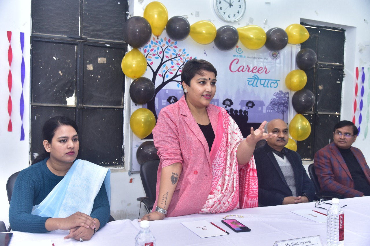 चौपाल के मुख्य अतिथि प्रो. शांतनु रस्तोगी (प्रो-वाइस चांसलर, डीडीयू गोरखपुर विश्वविद्यालय) रहे। करियर काउंसलिंग एवं प्लेसमेंट सेल तथा मेधा के समन्वयक प्रो. आलोक कुमार गोयल के कुशल मार्गदर्शन में आयोजित कार्यक्रम में मेधा की करियर प्रोग्रेशन मैनेजर स्वाति सिंह ने एंटरटेनमेंट और जर्नलिज़्म के क्षेत्र में करियर की संभावनाओं और आवश्यक कौशल पर चर्चा की।