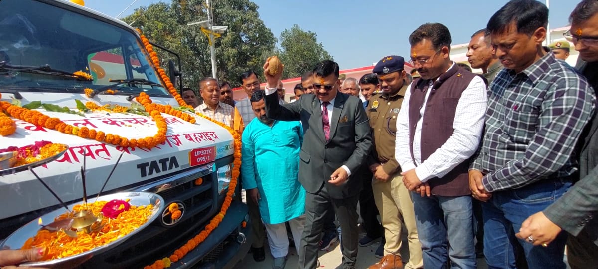 बहराइच( राष्ट्र की परम्परा) जनपद बहराइच में निराश्रित गौवंशो दुर्घटनाग्रस्त बड़े पशुओं के परिवहन हेतु जिलाधिकारी डॉ. दिनेश चन्द्र व पुलिस अधीक्षक प्रशान्त वर्मा द्वारा विधि विधान के साथ संयुक्त रूप से प्रमुख कैसरगंज संदीप कुमार सिंह बिसेन, उप जिलाधिकारी कैसरगंज महेश कुमार कैथल सहित क्षेत्रीय गणमान्य एवं संभ्रान्तजनों की उपस्थिति में कैसरगंज ब्लाक मुख्यालय प्रांगण से क्षेत्र पंचायत कैसरगंज द्वारा उपलब्ध करायी गयी कैटल कैचर मल्टी पर्पज वाहन को हरी झण्डी दिखाकर रवाना किया गया। जिलाधिकारी डॉ. दिनेश चन्द्र ने बताया कि प्रदेश में निराश्रित गौवंशो का संरक्षण एवं संवर्द्धन मुख्यमंत्री योगी आदित्यनाथ की सर्वोच्च प्राथमिकता है। उन्होंने कहा कि वाहन की उपलब्धता से जिले में विशेषकर विकास खण्ड कैसरगंज में निराश्रित, बेसहारा एवं छुट्टा गौवंशो के संरक्षण में उपयोगी होगा।