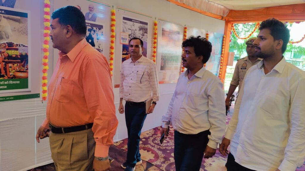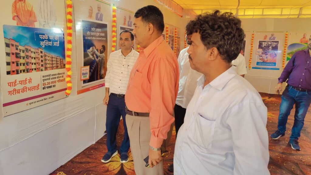 उल्लेखनीय है कि विकास भवन परिसर में प्रदेश सरकार की विकासपरक, लाभार्थीपरक एवं जनहितकारी योजनाओं जैसे, जल जीवन मिशन-शुद्व जल अब हर घर-द्वार, पीएम स्वनिधि योजना, 06 लाख युवाओं को सरकारी नौकरी, ओडीओपी से हुनरमन्दों को मिला मान-सम्मान, मुख्यमंत्री सामुहिक विवाह योजना, वाइल्ड लाइफ इको पर्यटन, विद्यालयों का कायाकल्प, राज्य विश्वविद्यालयों की स्थापना, थानों में महिला हेल्प डेस्क की स्थापना, मिशन शक्ति अभियान के माध्यम से महिला सुरक्षा, सम्मान एवं स्वालम्बन का अभिनव प्रयास, 01 ट्रिलियन डॉलर की अर्थ व्यवस्था बनने की ओर अग्रसर उत्तर प्रदेश, मुख्यमंत्री कन्या सुमंगला से 16 लाख बालिकाएं सम्मानित, अटल पेंशन योजना के तहत 75 लाख से अधिक लोगो से लाभान्वित करने वाला पहला राज्य बना उत्तर प्रदेश, ई-मार्केटप्लेस जेम पोर्टल के अन्तर्गत सर्वाधिक सरकारी खरीददारी करने वाला पहला राज्य बना उत्तर प्रदेश, मुफ्त दवाई मुफ्त उपचार, एम्स एवं मेडिकल कॉलेजों की स्थापना, कौशल विकास नीति, ईज आफ डूइंग बिजनेस अचीवर स्टेट उत्तर प्रदेश, आई और इलेक्ट्रानिक में अग्रणी राज्य बना उत्तर प्रदेश, 06 एक्सप्रेस-वे संचालित 07 निर्माणाधीन, मिलेट्स-2023 के अन्तर्गत श्री अन्न के प्रोत्साहन हेतु उत्तर प्रदेश मिलेट्स पुनरूद्वार कार्यक्रम संचालित, खेल कोटा के तहत सरकारी नौकरी, 06 शहरों में मेट्रो संचालित, गन्ना एवं चीनी उत्पादन में प्रथम राज्य बना उत्त्र प्रदेश, आयुष्मान भारत व मुख्यमंत्री जनारोग्य योजना में 09 करोड़ लोगो को स्वास्थ्य बीमा कवर, 58 हजार बी0सी0 सखी का चयन, प्रधानमंत्री जीवन ज्योति बीमा योजना में 1.46 करोड़ लोगो को लाभान्वित कर उत्तर प्रदेश देश में प्रथम, 15 करोड़ लोगो को निःशुल्क खाद्यान्न वितरण, प्रधानमंत्री आवास योजना में 55.20 लाख आवासों का निर्माण, प्रधानमंत्री किसान सम्मान निधि योजनान्तर्गत 2.63 करोड़ किसानों को रू0 60845 करोड़ हस्तांतरित, हर घर जल योजना से 1.65 करोड़ के अधिक घरों को नल कनेक्शन, 96 लाख से अधिक एम0एस0एम0ई ईकाईयां, पाई-पाई से गरीब की भलाई, ओलम्पिक विजेताओं का सम्मान, मॉ गंगा की अविरल-निर्मल धारा के लिए नमामि गंगे कार्यक्रम, अपराध एवं अपराधियों के प्रति जिरो टॉलरेंस नीति, 2.61 करोड़ शौचालयों का निर्माण, यूपी ग्लोबल इन्वेस्टर्स समिट में 36 लाख करोड़ रूपये से अधिक के एम0ओ0यू0, 804706 स्वंय सहायता समूहों के माध्यम से 10311982 महिलाओं को रोजगार, डीबीटी के माध्यम से भुगतान करने में उत्तर प्रदेश प्रथम, मनरेगा के क्रियान्वयन में प्रदेश का देश में प्रथम स्थान, दिव्य कुम्भ भव्य कुम्भ, प्रदेश में 03 अर्न्तराष्ट्रीय एयर पोर्ट संचालित, 02 अर्न्तराष्ट्रीय एयर पोर्ट निर्माणाधीन, भव्य-दिव्य राम मंदिर का निर्माण, काशी से हल्दिया तक देश का पहला अन