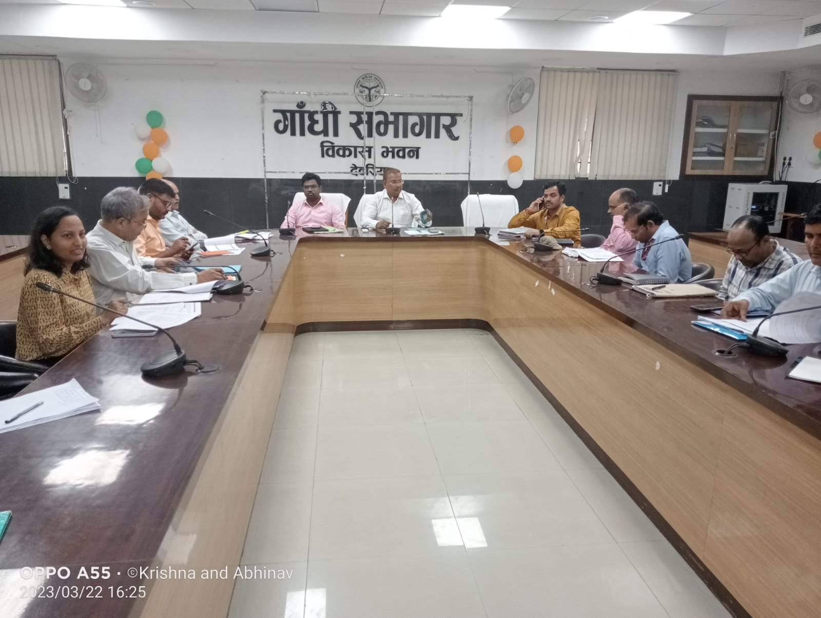 देवरिया (राष्ट्र की परम्परा)। प्रधानमंत्री ग्राम सड़क योजना के एफ०डी०आर० टेक्नोलॉजी के अन्तर्गत जनपद देवरिया के मार्गो के निर्माण कार्यों के चौड़ीकरण हेतु विद्युत विभाग के पोल शिफ्टिंग एवं वन विभाग द्वारा वृक्षों के पातन सम्बन्धी कार्यों की समीक्षा बैठक विकास भवन के गाँधी सभागार में मुख्य विकास अधिकारी रवींद्र कुमार की अध्यक्षता में की गई।