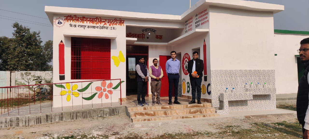 देवरिया (राष्ट्र की परम्परा)। मुख्य विकास अधिकारी प्रत्यूष पांडेय ने विकासखंड रामपुर कारखाना के ग्राम पंचायत गुद्दीजोर एवं ग्राम पंचायत मुजहना लाला में नवनिर्मित आंगनबाड़ी भवनों का निरीक्षण किया और शासन द्वारा निर्धारित 18 पैरामीटरों पर आंगनबाड़ी भवनों को संतृप्त करने के लिए संबंधित ग्राम प्रधान एवं सचिव को आवश्यक निर्देश दिया।