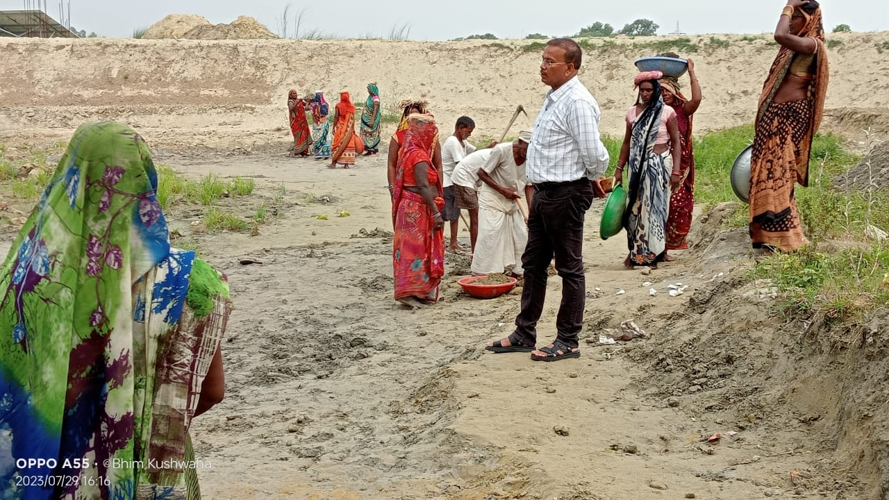 ग्राम पंचायत सिंगही विकास खण्ड देवरिया सदर मे बनाये जा रहे अमृत सरोवर पर कुल 29 श्रमिक कार्य करते हुए पाये गये। वर्ष 2023-24 मे चयनित अमृत सरोवर पर अब तक मात्र मु0 1.62 लाख रूपये का व्यय करते हुए कुल 1257 मानव दिवस का सृजन किया गया है। निरीक्षण के समय तैनात तकनीकी नागेन्द्र मिश्र के अनुपस्थित पाये जाने पर 1 दिन का मानदेय अदेय करने के निर्देश दिये गये। बनाये जा रहे अमृत सरोवर मे स्टेप नही बनाये जाने पर तैनात तकनीकी सहायक के विरूद्ध कठोर कार्यवाही करते हुए मानक के अनुसार कार्य को कराये जाने के निर्देश दिये गये। साथ ही श्रमिकों की संख्या को बढ़ाते हुए कार्य को 15 अगस्त के पूर्व कार्य पूर्ण कराते हुए 15 अगस्त को ध्वजारोहण कराये जाने के निर्देश दिये गये।