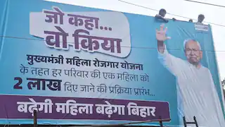 पटना के वीरचंद पटेल पथ पर जनता दल (यू) की ओर से बड़ा पोस्टर लगाया गया है। पोस्टर में लिखा है, “जो कहा वह किया, मुख्यमंत्री महिला रोजगार योजना के तहत हर परिवार की एक महिला को दो लाख दिए जाने की प्रक्रिया प्रारंभ।”