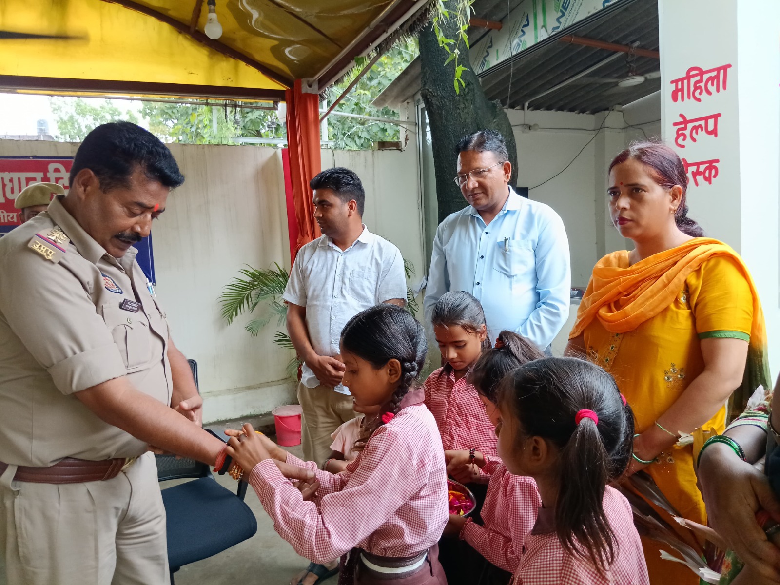 सिद्धार्थनगर (राष्ट्र की परम्परा डेस्क)। रक्षाबंधन के पावन पर्व पर भाई-बहन के अटूट प्रेम का अद्भुत उदाहरण तब देखने को मिला, जब प्राथमिक विद्यालय परसिया द्वितीय एवं प्राथमिक विद्यालय असनहरा के नन्हें-मुन्ने विद्यार्थियों ने थाना शिवनगर डिड़ई पहुँचकर पुलिस अधिकारियों व कर्मचारियों को राखी बाँधी। कार्यक्रम में बच्चों ने प्रभारी निरीक्षक थाना शिवनगर डिड़ई मनोज कुमार श्रीवास्तव समेत थाना स्टाफ के अन्य अधिकारियों व कर्मचारियों की कलाई पर राखी बाँधकर उनके प्रति सम्मान और स्नेह व्यक्त किया। बदले में प्रभारी निरीक्षक मनोज कुमार श्रीवास्तव ने बच्चों को चॉकलेट, कॉपी, ज्यामेट्री बॉक्स, पेन सहित विभिन्न शैक्षणिक सामग्री उपहार स्वरूप भेंट की। इस अवसर पर खण्ड शिक्षा अधिकारी मिठवल श्री धर्मेन्द्र पाल, नोडल अधिकारी श्री अंकितेश कुमार, सहायक अध्यापिका श्रीमती जूही सिंह, श्रीमती गुंजा सिंह एवं विनीता चौधरी सहित विद्यालय का समस्त स्टाफ मौजूद रहा। रक्षाबंधन के इस अनोखे उत्सव ने पुलिस और बच्चों के बीच आपसी स्नेह और विश्वास को और भी प्रगाढ़ बना दिया।