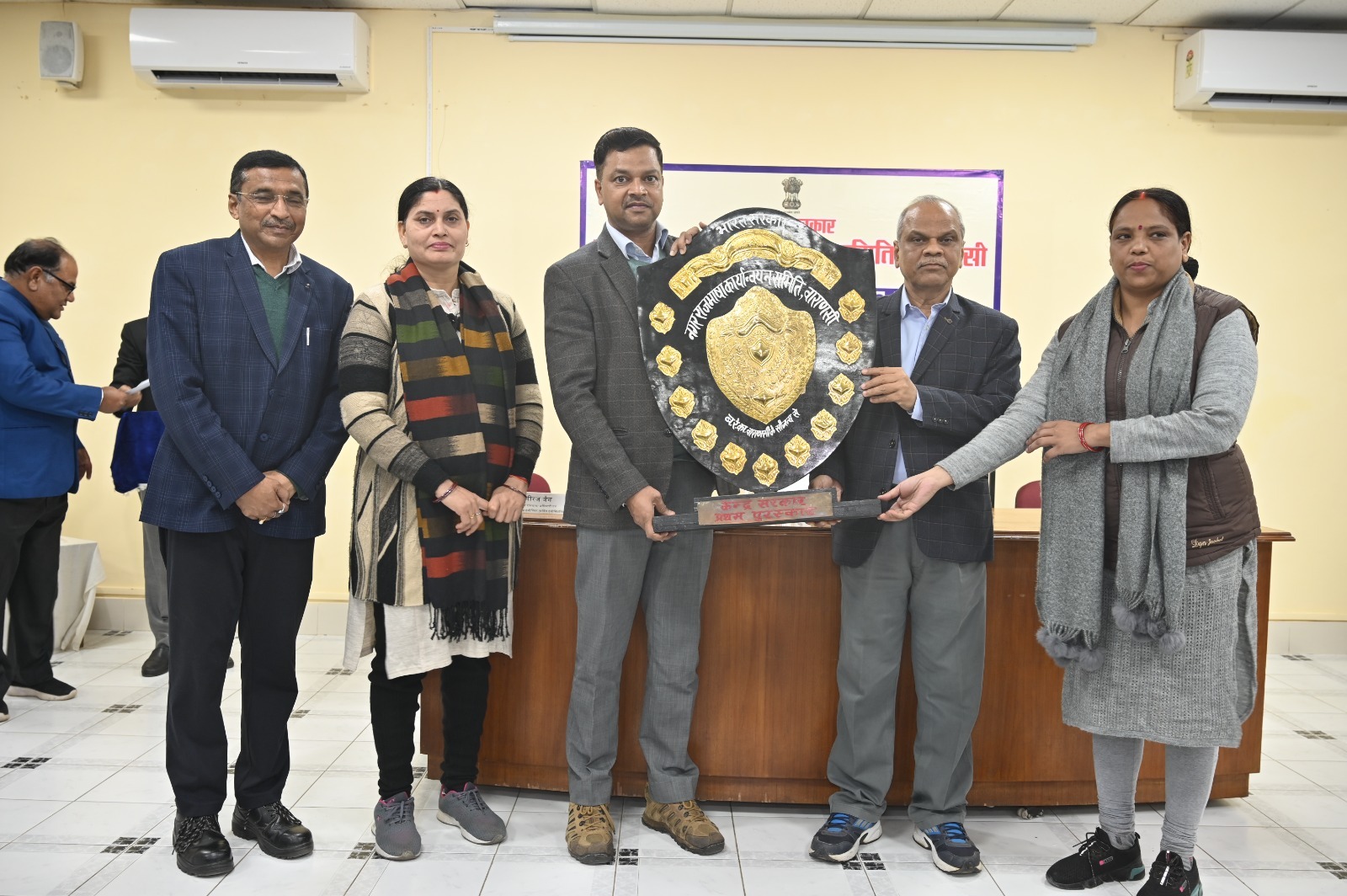 वाराणसी(राष्ट्र की परम्परा) बनारस लोकोमोटिव वर्क्सशाप के प्राविधिक प्रशिक्षण केंद्र में आयोजित नगर राजभाषा कार्यान्वयन समिति की छःमाही बैठक में मंडल रेल प्रबंधक कार्यालय पूर्वोत्तर रेलवे, वाराणसी को हिन्दी में उत्कृष्ट कार्य करने हेतु प्रथम पुरस्कार महाप्रबंधक/बरेका वासुदेव पांडा के कर कमलों से अपर मंडल रेलप्रबंधक(आपरेशन)/वाराणसी राजेश कुमार सिंह ने प्राप्त किया ।
