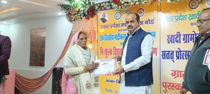 मऊ (राष्ट्र की परम्परा डेस्क)। उत्तर प्रदेश माटी कला बोर्ड और उत्तर प्रदेश खादी ग्राम उद्योग बोर्ड द्वारा संयुक्त रूप से आयोजित एक दिवसीय माटी कला जागरूकता एवं नि:शुल्क विद्युत चलित चाक वितरण कार्यक्रम व्हाइट पैलेस, निजामुद्दीनपुरा में संपन्न हुआ। कार्यक्रम में मुख्य अतिथि जिला पंचायत अध्यक्ष मनोज राय ने प्रतिभागियों को सरकार की योजनाओं का लाभ लेने और उन्हें आम जनता तक पहुंचाने का आह्वान किया।