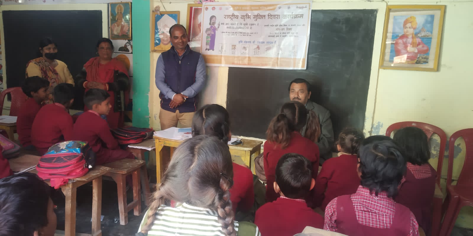 स्वास्थ्य कार्यकत्रि अंजना श्रीवास्तव , एनएम पूनम भारती , आशा बहु सुषमा श्रीवास्तव समेत विद्यार्थी , शिक्षक व परिजन मौजूद रहे।