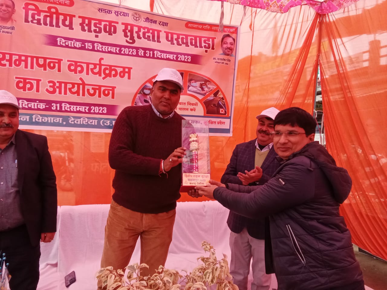 देवरिया(राष्ट्र की परम्परा)।मुख्य सचिव उत्तर प्रदेश शासन द्वारा दिये गये निर्देश के क्रम में वर्ष 2023-24 में 15 दिसंबर से 31 दिसम्बर 2023 तक द्वितीय सड़क सुरक्षा पखवाड़ा मनाया जा रहा है। जिसके अंतिम दिन सहायक सम्भागीय परिवहन अधिकारी कार्यालय के सामने द्वितीय सड़क सुरक्षा पखवाड़ा के समापन समारोह आयोजन किया गया। उक्त कार्यक्रम में मुख्य अतिथि जिलाधिकारी अखण्ड प्रताप सिंह रहें।