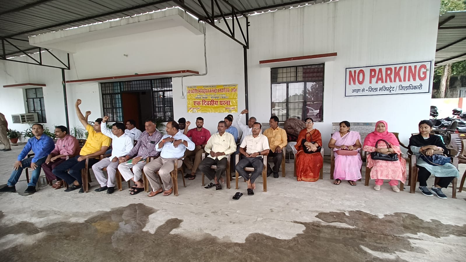 कलेक्ट्रेट कर्मचारी एक दिवसीय धरने पर बैठे