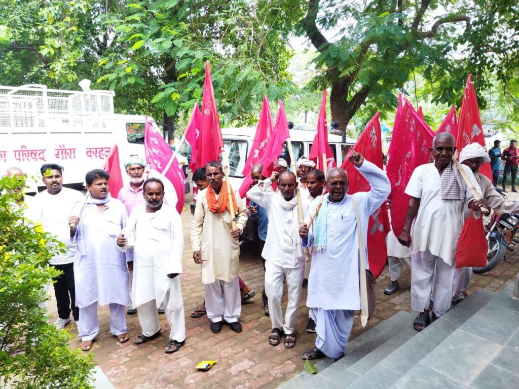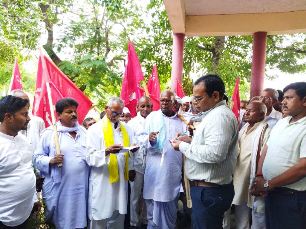 बरहज /देवरिया(राष्ट्र की परम्परा) शुक्रवार को भारतीय कम्युनिस्ट पार्टी के कामरेड हरीबन्द प्रसाद व कामरेड अरविंद कुशवाहा के नेतृत्व में सैकड़ो कार्यकर्ताओं ने 6 सूत्रीय मांगों पर मुख्यमंत्री को सम्बोधित ज्ञापन उपजिलाधिकारी गजेंद्र सिंह को सौपा। आपको बताते चले लवरछी बाईपास स्थित भारतीय कम्युनिस्ट पार्टी कैम्प कार्यालय से शुक्रवार को कामरेड हरिबन्द प्रसाद, व कामरेड अरविंद कुशवाहा के नेतृत्व में अनेको कार्यकर्ताओं ने हाथ मे झंडा लिए अपनी मांगों पर नारा लगाते हुए बरहज तहसील में पहुँचे जहाँ पर मुख्यमंत्री को सम्बोधित ज्ञापन उपजिलाधिकारी को सौपा।