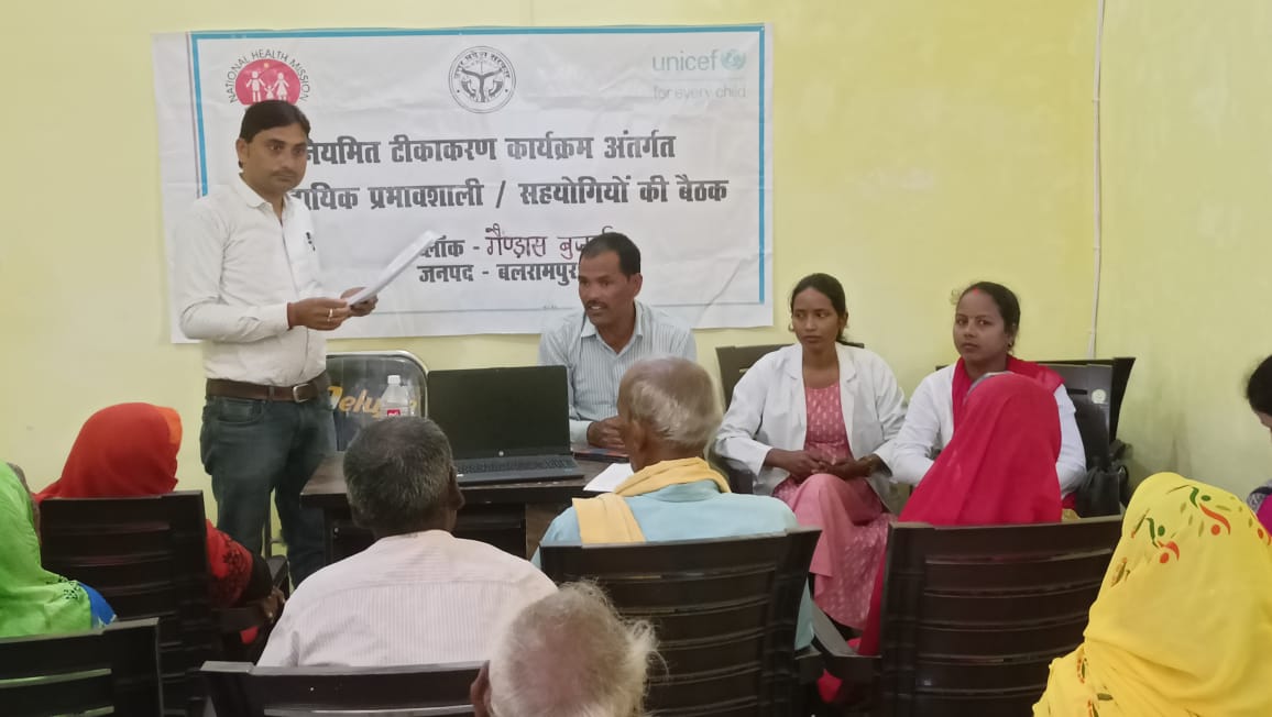 उतरौला/बलरामपुर(राष्ट्र की परम्परा)।यूनिसेफ द्वारा ब्लॉक गैडास बुजुर्ग में सामुदायिक बैठक का आयोजन पंचायत भवन नारायणपुर में किया गया। बैठक का प्रमुख उद्देश्य समुदाय के गर्भवती महिला की देखभाल तथा 0 से 5 वर्ष तक के बच्चों के टीकाकरण के प्रति समुदाय को जागरूक करने का था। जिसके अंतर्गत सर्वप्रथम रामशंकर यादव बीएमसी यूनिसेफ द्वारा समुदाय का स्वागत करते हुए गर्भवती महिला का शीघ्र पंजीकरण,चार प्रमुख जांचें, दो टीडी का टीकाकरण, प्रसव पूर्व देखभाल व जननी सुरक्षा योजना के बारे में समुदाय को संवेदीकरण कर जागरूक किया गया। उसके बाद 5 साल 7 बार छूटे न टीकाकरण एक भी बार पर जानकारी देते हुए टीकाकरण के फायदे बताए कि बच्चों को टीकाकरण करा कर टीबी, गलाघोंटू, काली खांसी, टिटनेस, पीलिया, खसरा, पोलियो आदि गम्भीर बिमारियों से बचाकर अपने बच्चों को सुरक्षा प्रदान कर जीवन भर के लिए उनके चेहरे पर मुस्कान दे सकते हैं। इस मौके पर स्वास्थ्य विभाग से त्रिलोकीनाथ बीसीपीएम दीपशिखा सी एच ओ मायावती ए एन एम शीला संगिनी राधेश्याम यादव पंचायत सेक्रेट्री मोहम्मद रियाज अहमद पंचायत सहायक, रामगोपाल रोजगार सेवक तथा समुदाय की लोग उपस्थित रहे।