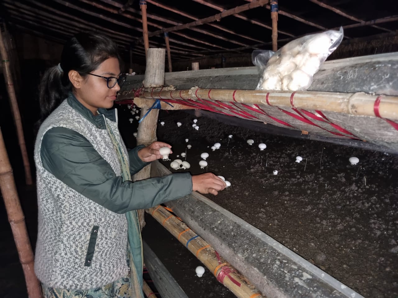 बहराइच (राष्ट्र की परम्परा) जनपद के नानपारा कृषि विज्ञान केंद्र में मशरूम की उन्नतिशील खेती विषय पर प्राप्त व्यवसायिक प्रशिक्षण के उपरान्त ग्राम चितरहिया बाबागंज विकासखंड नवाबगंज के कृषक सजन कुमार एवं उनके साथी रमेश कुमार ,संतोष कुमार एवं दिनेश ने बटन मशरूम उत्पादन को व्यवसाय के रूप में अंगीकृत कर अपना स्वरोजगार स्थापित किया है l क्षेत्र के अन्य कृषकों का भी उत्साहवर्धन हो रहा है। बीते दिन प्रक्षेत्र भ्रमण के दौरान सजन कुमार द्वारा लगाई गई बटन मशरूम की फसल का अवलोकन केंद्र के वैज्ञानिकों द्वारा किया गया l केंद्र के वरिष्ठ वैज्ञानिक एवं अध्यक्ष डॉ. के.एम.सिंह ने सफलतापूर्ण मशरूम उत्पादन के लिए सजन कुमार और उनके साथियों के अथक प्रयास की सराहना करते हुए उन्हें बधाई दी एवं अतिरिक्त आय का स्रोत बताते हुए अन्य कृषकों से बटन मशरूम की उन्नतशील खेती के माध्यम से रोजगार सृजन एवं आय दोगुनी करने का आह्वान किया। वैज्ञानिक डॉ हर्षिता ने बताया कि स्थानीय बाजार में ₹160 से ₹180 प्रति किलो की दर से बिकने वाले बटन मशरूम को भूमिहीन किसान भी 10×10 के कमरे में फसल अवशेषों के उपयोग से सर्दियों के मौसम में कम लागत में बड़ी ही असानी से उगा सकते हैं। उन्होंने बताया कि बटन मशरूम के अच्छे उत्पादन के लिए दीर्घ विधि के द्वारा 28 दिन में तैयार किया गया। अच्छा कंपोस्ट गुणवत्ता युक्त बीज के साथ साथ सही तापक्रम एवं नमी अति आवश्यक हैl किसान एक कुंटल कंपोस्ट द्वारा कम से कम 15 से 20 किलो उत्पादन अवश्य प्राप्त कर सकते हैं। रेनु आर्या ने मशरूम के पौष्टिक गुणों के बारे में विस्तारपूर्वक बताया। डॉ अरुण कुमार ने मशरूम के विपणन के बारे में जानकारी दी। सजन कुमार एवं साथियों ने केंद्र के वैज्ञानिकों को उनके अनंत सहयोग के लिए आभार प्रकट किया।