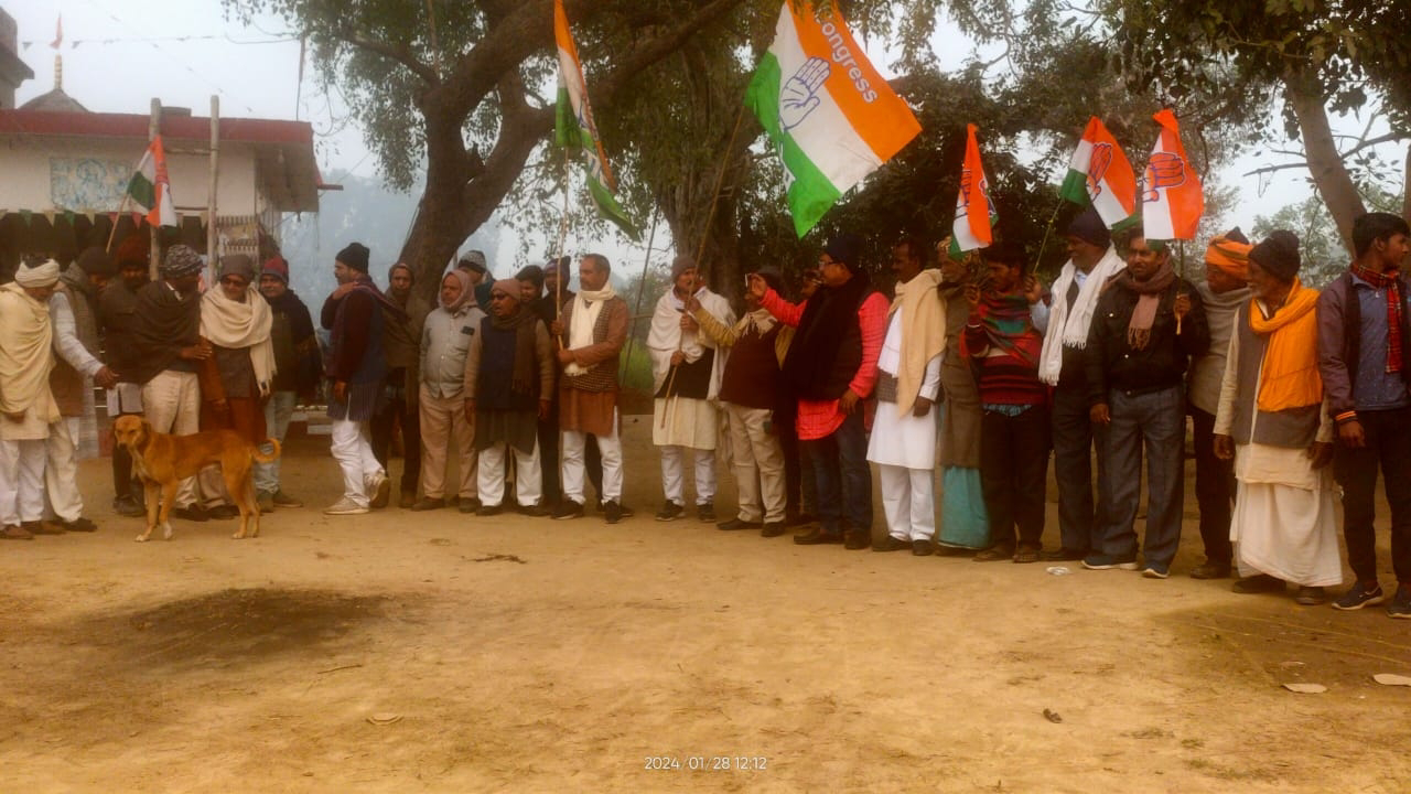 कांग्रेस की भारत जोड़ो न्याय यात्रा के अंतर्गत पार्टी के आह्वान पर रविवार को कांग्रेस कार्यकर्ताओं द्वारा गड़वार विकास खण्ड के न्याय पंचायत खरहाटार स्थित काली मंदिर से यात्रा निकलकर खड़ीचा,त्रिकालपुर, गड़वार बाजार होते हुए ब्लाक परिसर में पहुंची, जहां पर गोष्ठी का आयोजन हुआ। इस दौरान मार्ग में पड़ने वाले शहीद स्थलों व महापुरूषों की प्रतिमाओं पर कांग्रेसी कार्यकर्ताओं ने पुष्पांजलि अर्पित की। वहीं स्वतंत्रता संग्राम सेनानी के घर जाकर उनके स्वजन को भी सम्मानित किया। इसके अलावा वरिष्ठ नेताओं व पूर्व पदाधिकारियों के घर जाकर सम्मानित किया गया। गोष्ठी की संबोधित करते हुए प्रदेश कांग्रेस कमेटी के सदस्य एवं प्रभारी न्याय यात्रा कन्हैया पाण्डेय ने संगठन की मजबूती पर बल देते हुए कार्यकर्ताओं से पार्टी के मिशन 2024 की सफलता के लिए जी जान से जुटने का आह्वान किया। उन्होंने कहा कि राहुल गांधी ही एक ऐसे नेता है जो सभी की लड़ाई लड़ रहें है। सरकार देश का संविधान बदलना चाहती है। संविधान कांग्रेस के ही नेतृत्व में बचेगा। फेफना विधान सभा के पूर्व कांग्रेस प्रत्याशी जैनेन्द्र पाण्डेय ने कहा कि राहुल गांधी देश के गरीबों, मजलूमों,पिछड़ों, दलित अल्पसंख्यकों को न्याय दिलाने के लिए यात्रा शुरू किए हैं। यात्रा को अपार समर्थन आम नागरिकों द्वारा मिल रही है। न्याय यात्रा में हीराराम,डा०सुरेश गोंड,सरल पाठक, राजनारायन उपाध्याय,विजय पाण्डेय,जितेन्द्र पाण्डेय,प्रधान राजेश राजभर, परमात्मानंद गोंड, प्रेमशंकर,अवधेश, अबुल फैज एवं गिरीश कांत गांधी के साथ ही बड़ी संख्या में कांग्रेसी मौजूद रहे ।