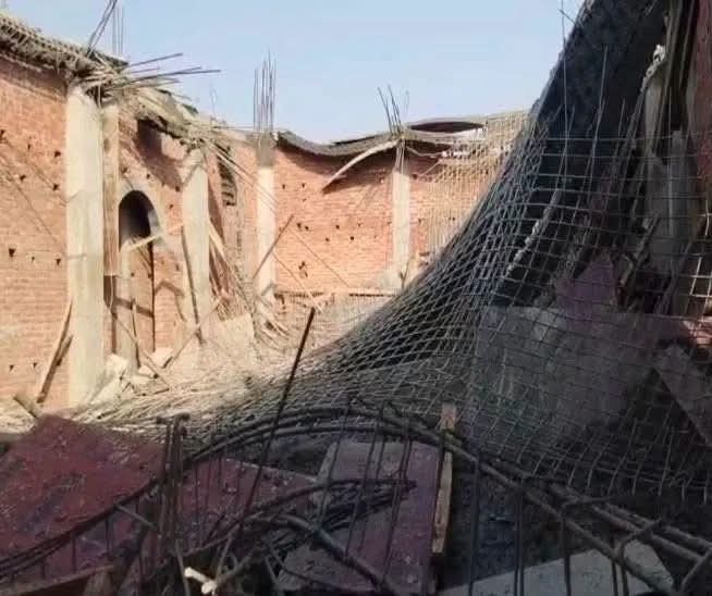 निर्माणाधीन मैरिज हॉल का लिंटर ढहा, मलबे में दबे मजदूर—एक की हालत गंभीर