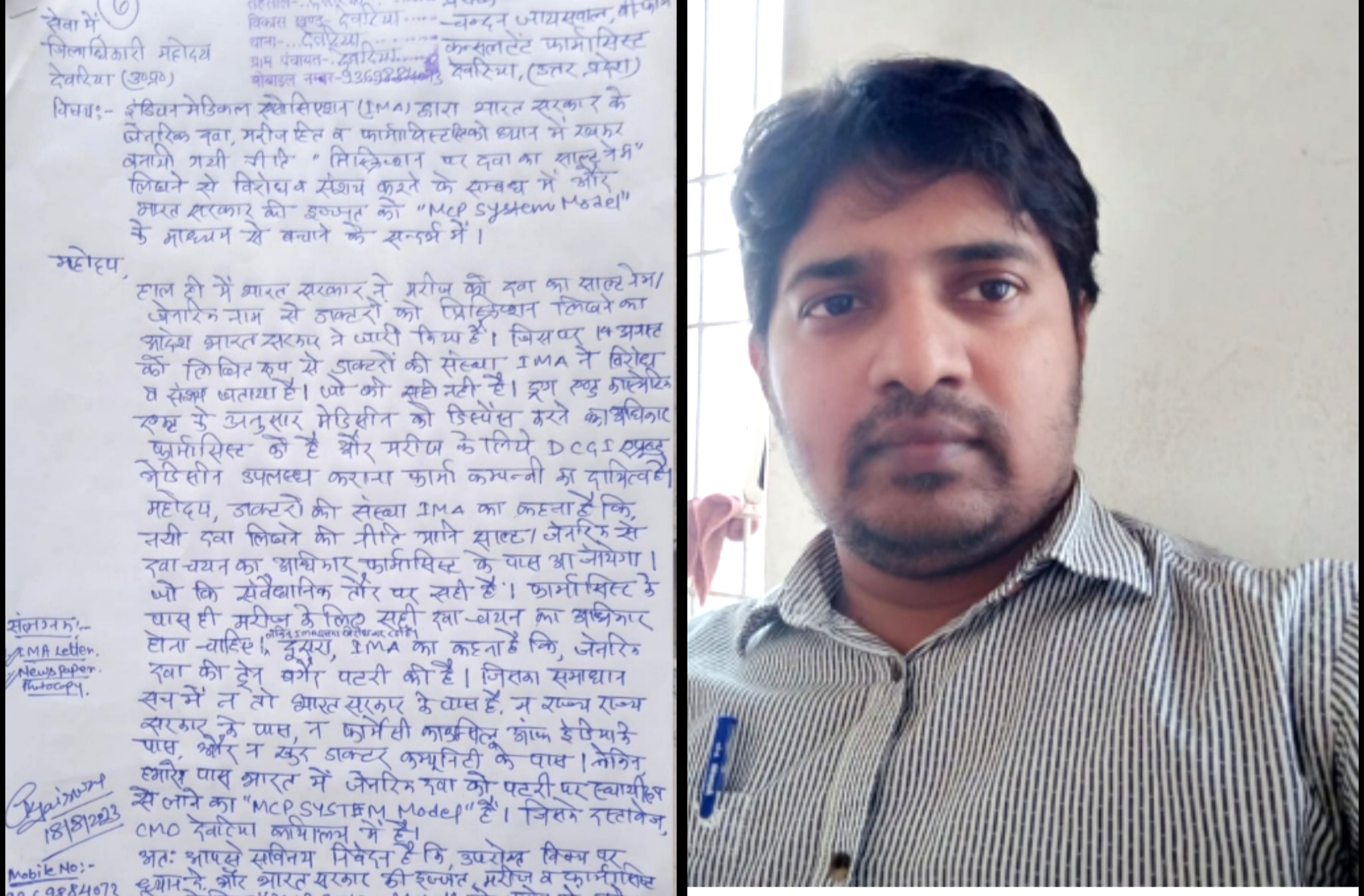 देवरिया(राष्ट्र की परम्परा) कंसलटेंट फार्मासिस्ट चंदन जयसवाल ने जिला अधिकारी देवरिया को ज्ञापन दिया और ज्ञापन में कहा की हाल ही में भारत सरकार ने मरीजों को दवा के सॉल्ट नेम जेनेरिक नाम के साथ प्रिस्क्रिप्शन लिखने का आदेश जारी किया है। जिस पर 14 अगस्त को डॉक्टरों के संगठन आईएमए ने लिखित रूप से विरोध और संदेह जताया है। जो सही नहीं है। ड्रग एंड कॉस्मेटिक एक्ट के मुताबिक, फार्मासिस्ट को दवा देने का अधिकार है और फार्मा कंपनी की जिम्मेदारी है कि वह मरीज को डीसीजीई से तैयार दवा मुहैया कराए। डाक्टरों की संस्था आईएमए का कहना है कि, नई दवा नीति से साल्ट/जेनरिक दावा चयन का अधिकार फार्मासिस्ट के हाथ में आजाएगा जो की संविधानिक रूप से सही है । केवल फार्मासिस्ट को ही रोगी के लिए सही दवा चुनने का अधिकार होना चाहिए। आई एम ए का कहना है कि जेनरिक दवा की ट्रेन बे पटरी है।जिसका समाधान न तो भारत सरकार के पास है नही राज्य सरकार के पास नही फार्मेसी काउंसिल ऑफ इंडिया के पास नही खुद डाक्टरों कैम्यूनिटी के पास लेकिन हमारे पास भारत में जेनरिक दवा को पटरी पर लाने का एम सी पी सिस्टम मॉडल है । जिससे संबंधित दस्तावेज मुख्य चिकित्सा अधिकारी देवरिया के कार्यालय में उपस्थित है ।आगे उन्होंने अनुरोध किया की उक्त के संदर्भ में ध्यान आकर्षित कर मरीजों फार्मासिस्ट के हित में एम सी पी सिस्टम मॉडल प्रयोग में लाने की कृपा करे ।स्थायी रूप से पटरी पर लाने के लिए हमारे पास “एमसीपी सिस्टम मोडेप” है। किसके दस्तावेज,सीएमओ कार्यालय देवरिया में है। अतः आपसे विनम्र निवेदन है कि उपरोक्त विषय पर ध्यान देकर भारत सरकार, मरीजों एवं कर्मियों के सम्मान हेतु “एमसीपी सिस्टम मॉडल” का प्रयोग करें