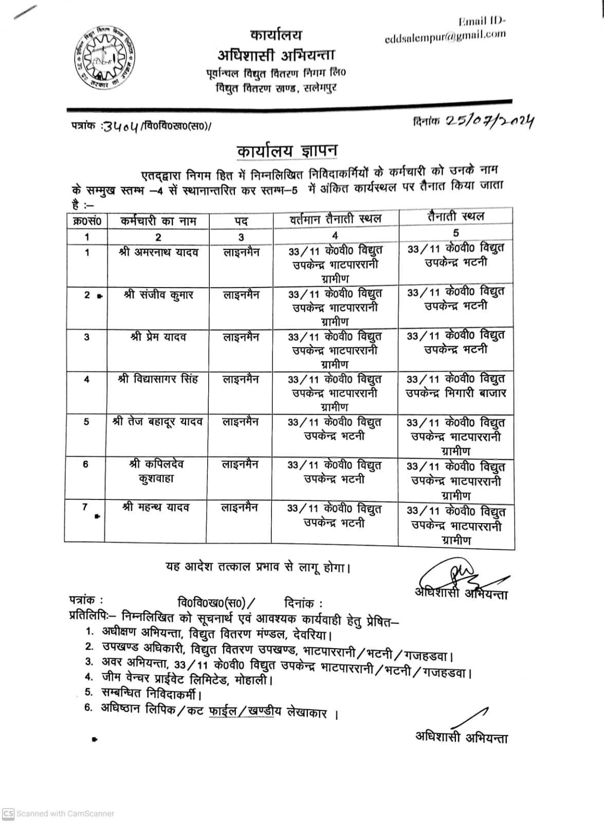 भाटपार रानी /देवरिया(राष्ट्र की परम्परा) उपकेंद्र भाटपार रानी ग्रामीण पर तैनात संविदा कर्मियों लाइन मैन जो की अपने स्थानांतरण से नाराज थे । इतने नाराज हुए की मार पीट पर उतारू हो अपर अभियंता पर हमला कर दिए। अपर अभियंता विधुत केंद्र भाटपार रानी राम आशीष राम जो की एक सी इस सी पर खड़े थे । और कुछ बात चीत कर रहे थे तभी संबिदा कर्मी अमर नाथ यादव,प्रेम यादव,रवि कुशवाहा,अजय कुमार ,उपेंद्र कुमार कुछ अन्य व्यक्तियों के साथ आए और अपर अभियंता राम आशीष राम से पूछा की हमारा स्थानांतरण क्यों हुआ जिसपर इनके द्वारा इस स्थानांतरण से कोई लेना देना न होना कहा गया जिसपर संविदा कर्मी उग्र हो गए और अपर अभियंता से मार पीट करने लगे जिससे अपर अभियंता को काफी चोट लगी । राम आशीष राम द्वारा इस संदर्भ में प्राथमिकी दर्ज कराने की कार्यवाही की गई है। लगभग सभी विधुत उपकेंद्र पर इस समय स्थानांतरण की प्रक्रिया चल रही है ।अब देखना ये है की इनपर विभाग द्वारा कोई कार्यवाही होती है या नही।