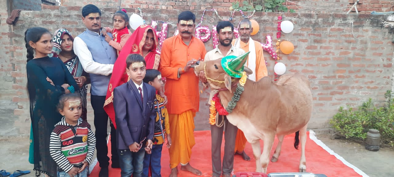 बहराइच (राष्ट्र की परम्परा) जनपद के महसी क्षेत्र के ग्राम पंचायत करेहना में रहने वाले समाजसेवी ब्राह्मण सेवा संस्थान के प्रदेश मीडिया प्रभारी मनोज अवस्थी ने अपने परिवार के साथ गाय की बछिया का पहला जन्मदिन बड़े ही धूमधाम से मनाया। आपने अपने आसपास बच्चों और बड़ों को जन्म दिवस मनाते हुए जरूर देखा होगा लेकिन क्या आपने सोचा होगा कि पशुओं का भी जन्मदिन मनाया जाता है आज कुछ ऐसा ही देखने को मिला है ग्राम पंचायत करेहना में जो गाय की बछिया का जन्मदिन बड़े ही धूमधाम से मनाया गया। बछिया को कुमकुम, पुष्प, चंदन, धूप, दीप आदि से पूजा करके माला पहना कर अंग वस्त्र डालकर जन्मदिन मनाया इन्होंने बताया कि गाय हम सभी की माता है और गाय की हम सभी को पूजा करनी चाहिए और कहा कि जो गाय आवारा घूम रही हैं उनको एक एक करके सभी किसानों को बांध लेना चाहिए क्योंकि अगर गौ माता को कोई कष्ट होगा तो हम लोग सुखी नहीं रह पाएंगे।