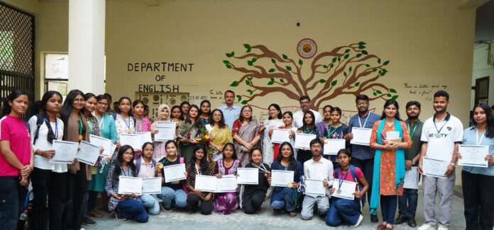 गोरखपुर (राष्ट्र की परम्परा)। दीनदयाल उपाध्याय गोरखपुर विश्वविद्यालय के अंग्रेजी विभाग के इंग्लिश स्टडी सर्किल द्वारा भव्य पुरस्कार वितरण समारोह का आयोजन किया गया। पिछले दो महीनों में स्नातक एवं स्नातकोत्तर स्तर पर कविता पाठ, निबंध लेखन, कहानी लेखन, भाषण कला एवं प्रश्नोत्तरी सहित पांच प्रतियोगिताओं का सफल आयोजन किया गया, जिनमें सैकड़ों छात्र-छात्राओं ने उत्साहपूर्वक भाग लिया।