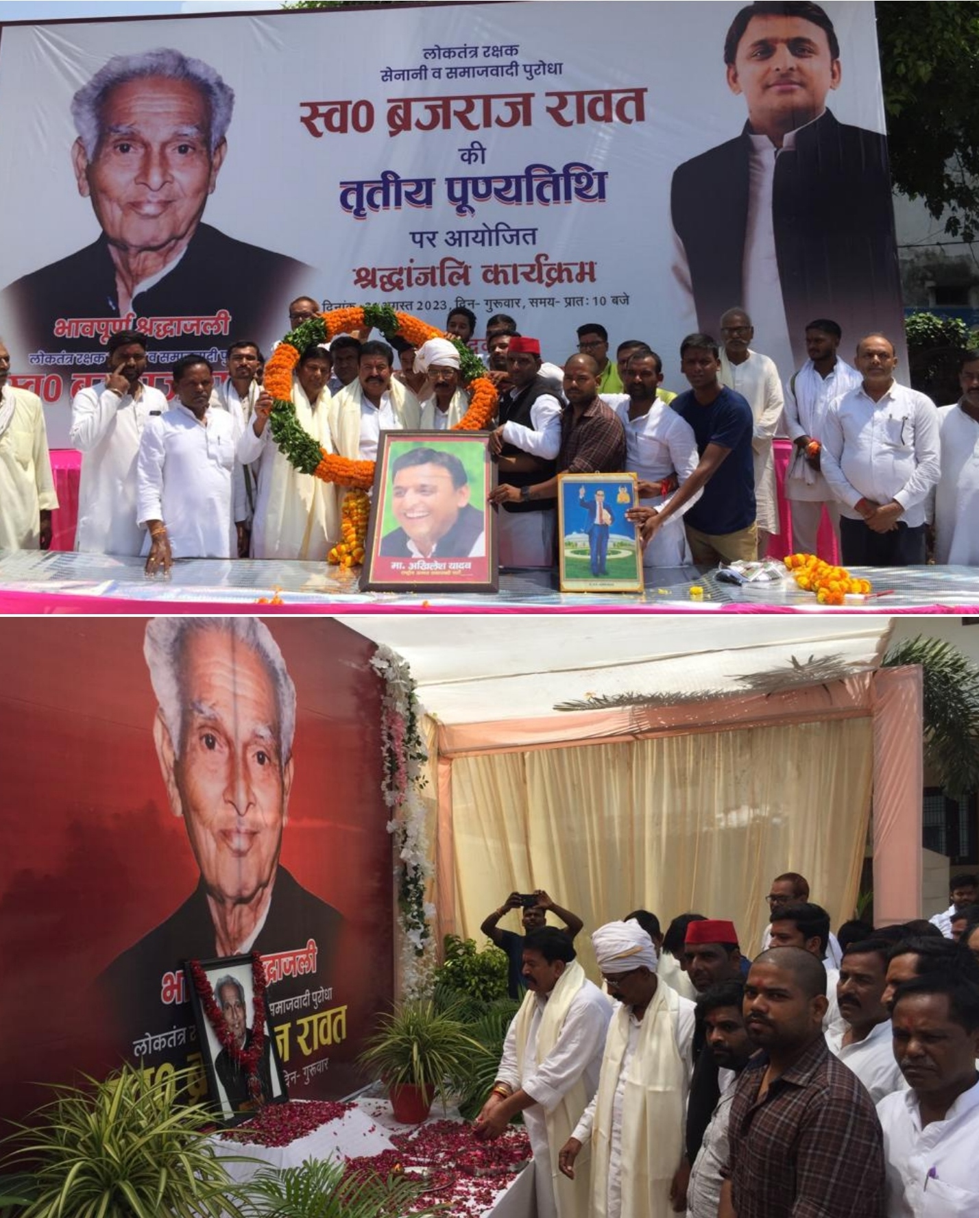 देवरिया/बरहज (राष्ट्र की परम्परा) बरहज विधानसभा के लवरछी गांव में समाजवादी पुरोधा लोकतंत्र रक्षक सेनानी ब्रजराज रावत की तिसरी पुण्यतिथि बरहज उनके गांव मे मनाई गई इस दौरान जन प्रतिनिधियो के सम्मान समारोह का भी आयोजन किया गया इस दौरान श्रद्धाजली सभा को संबोधित करते बतौरे मुख्य अतिथि राधेश्याम सिंह ने कहा कि समाजवाद का अलख जगाने का काम किया था और हमेशा समाजवाद को आगे बढ़ाने का काम किया और रावत एक मिशाल थे लोगों को उनके पद चिन्हों से सिख लेना चाहिए कि समाज वाद क्या होता हैं । विषिष्ट अतिथि पूर्व सांसद रमाशंकर राजभर ने कहा की गरीबों की हमेशा मदद की और समाजवादी यो को एक माला में पिरोने का काम किया ऐसे समाजवादी बिरले ही मिलते है। कार्यक्रम की अध्यक्षता करते हुए पूर्व विधायक गजाला लारी ने कहा की ब्रजराज रावत एक नेक दिल इसान थे और हमेशा गरीबों मजलूमो की मदद करते थे। उन्होंने कभी पद की लालच नहीं की और राजनीति को राजनीति समझ कर राजनीति की इस दौरान बडे पैमाने पर समाजवादीयो का जमावड़ा हुआ इस दौरान मुख्य रूप से सपा प्रत्याशी देवरिया पिन्टू सिंह, उमेश नरायण शाही ,रविप्रताप सिंह ,राम यादव नगरपालिका अध्यक्ष सलेमपुर, अली आजम शेख, पूर्व चयरमैंन विरेन्द्र गुप्ता,मनिष सिंह, छात्र सभा जिलाध्यक्ष मनोज यादव,हरिओम लाला, जिला उपाध्यक्ष एन पी यादव, पारस नाथ यादव, संजीव यादव, अमित प्रधान, कैलाश पति सैथवार चन्द्र भुषण यादव, दीनानाथ चौधरी, रामप्रीत यादव, विकास यादव, राजाराम यादव, पिन्टू चौधरी, राम बहादुर यादव, सतिश यादव, राजेश यादव, हरिओम यादव, विकाश विश्वकर्मा, अजय यादव, पदमाकर बाबा ,अशोक सिंह विवेक रंजन इत्यादि लोग उपस्थित थे।
