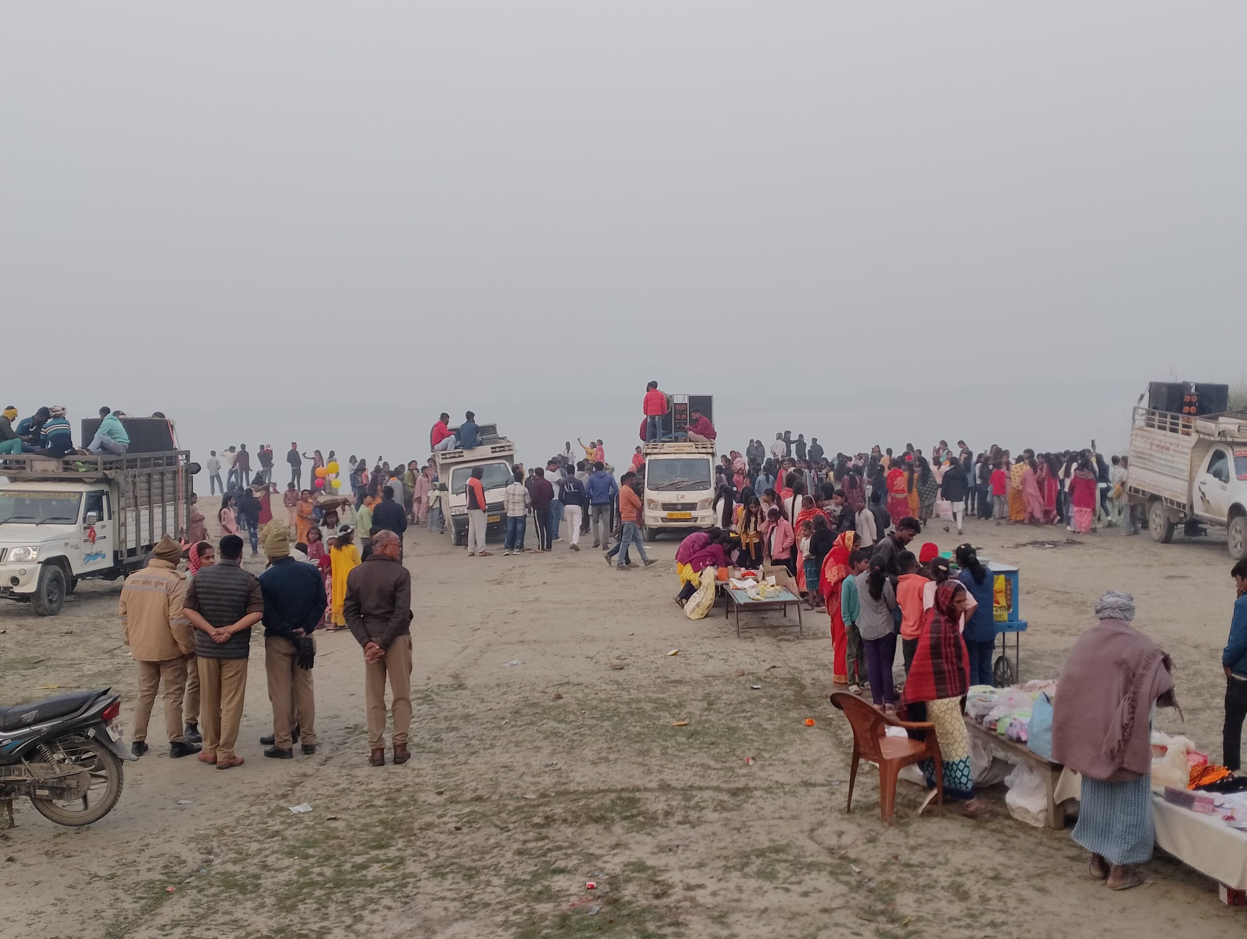 भीड़ को देखते हुए प्रशासन ने सुरक्षा की पुख्ता व्यवस्था की थी। पुलिस बल की तैनाती, मार्ग-व्यवस्था और भीड़ नियंत्रण सुचारू रहा। देर रात तक घाट और आसपास के क्षेत्रों में चहल-पहल बनी रही, और कार्यक्रम शांतिपूर्ण ढंग से संपन्न।