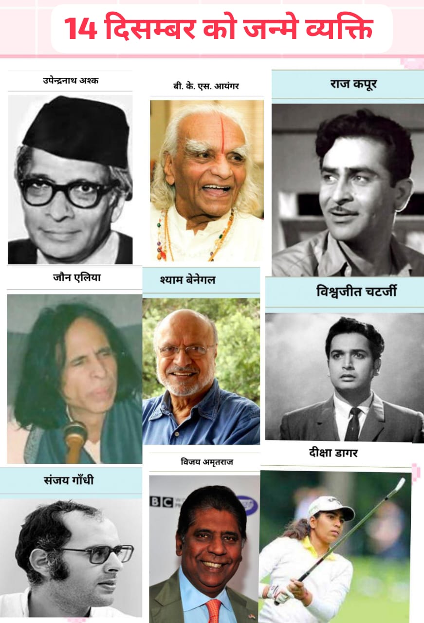 14 दिसंबर केवल एक तारीख नहीं, बल्कि भारतीय इतिहास, साहित्य, सिनेमा, खेल और योग के उन नक्षत्रों की स्मृति है, जिनके जन्म ने देश की चेतना को नई ऊँचाइयाँ दीं। इस दिन जन्मे व्यक्तित्वों ने अपने-अपने क्षेत्र में न केवल भारत का नाम रोशन किया, बल्कि समाज को सोचने, समझने और आगे बढ़ने की प्रेरणा भी दी। आइए जानते हैं 14 दिसंबर को जन्मे उन महान व्यक्तियों के बारे में, जिनकी विरासत आज भी जीवित है।