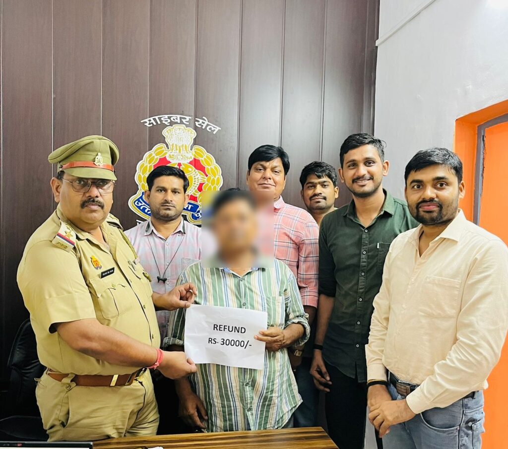 मोहम्मद काफिल खाँ पुत्र स्व. अजीम खाँ निवासी सी/1209 देवा रोड रफ़ीनगर थाना कोतवाली नगर जनपद बाराबंकी ने, साइबर अपराधियों द्वारा धोखाधड़ी कर यूपीआई के माध्यम से कुल 30,000/- रुपये निकाल लिए जाने सम्बन्धी शिकायत दर्ज कराई गयी, संदर्भित प्रकरण में साइबर सेल टीम द्वारा त्वरित कार्यवाही करते हुए आवेदक की सम्पूर्ण धन राशि (30,000/- रुपये) को वापस कराया गया। लोगो ने पुलिस को धन्यवाद ज्ञापित किया।