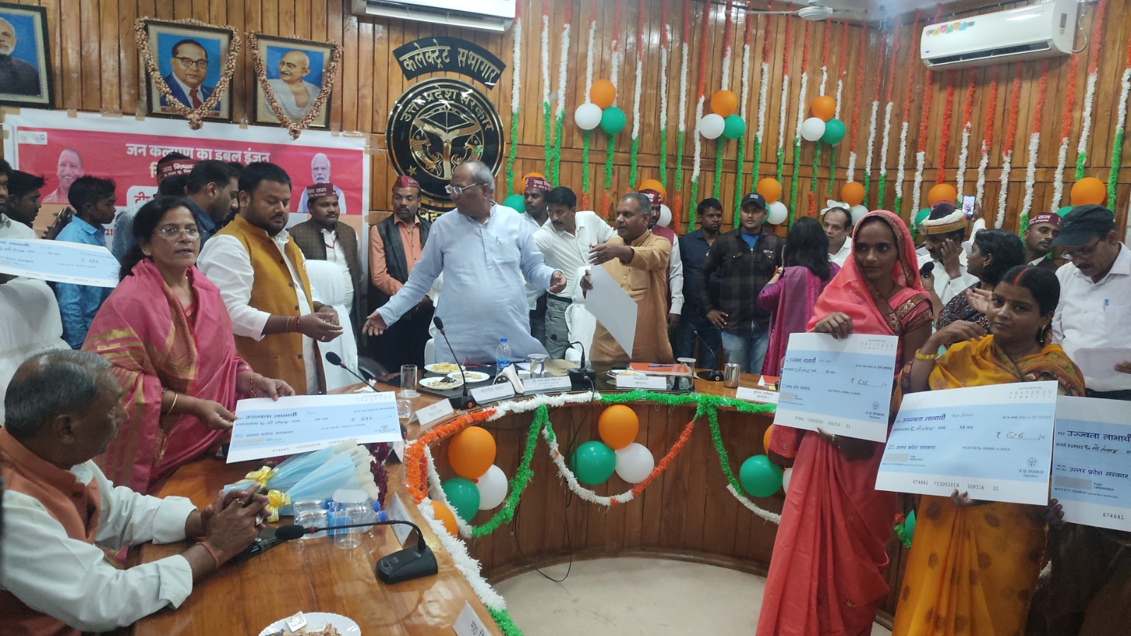 इस अवसर पर कलेक्ट्रेट सभागार में प्रदेश के मंत्री, मत्स्य/प्रभारी मंत्री जनपद बहराइच डॉ संजय कुमार निषाद की अध्यक्षता में आयोजित कार्यक्रम में मुख्यमंत्री के कार्यक्रम का सजीव प्रसारण किया गया। साथ ही प्रभारी मंत्री डॉ निषाद ने सांसद बहराइच अक्षयवर लाल गोंड, जिला पंचायत अध्यक्ष मंजू सिंह, एम एल सी पदमसेन चौधरी व डॉ प्रज्ञा त्रिपाठी, विधायक नानपारा राम निवास वर्मा, जिला अध्यक्ष भाजपा बृजेश पाण्डेय, विधायक बलहा सरोज सोनकर के प्रतिनिधि आलोक जिंदल, जिलाधिकारी मोनिका रानी, पुलिस अधीक्षक प्रशांत वर्मा, मुख्य विकास अधिकारी रम्या आर. व अन्य के साथ उज्ज्वला योजना के 100 लाभार्थियों को प्रतीकात्मक चेक का वितरण किया।